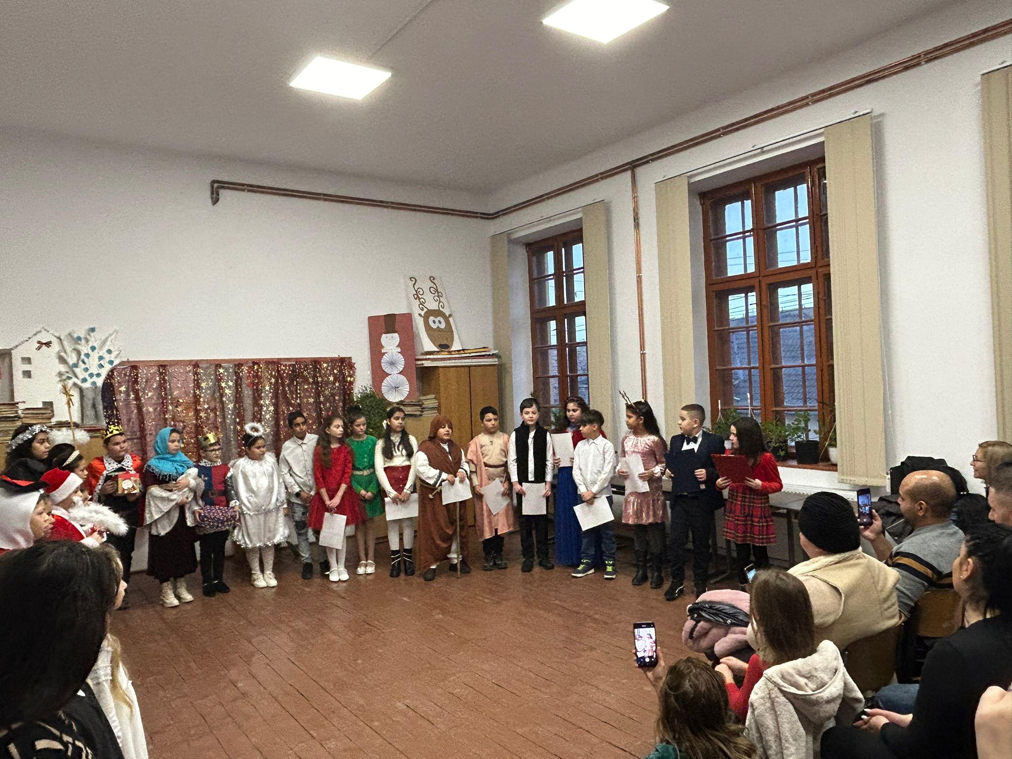 În ultima zi de școală din acest an calendaristic, vineri, 22 decembrie, numeroșii colindători au fost invitați să susțină un scurt moment artistic la finalul serbării de Crăciun intitulate „Ziua bună, gazdă-aleasă”. Acest program a fost pregătit de elevii ciclului primar, coordonați de doamnele învățătoare, și s-a bucurat de prezența părinților, a bunicilor și a altor invitați. La acest moment de suflet, micii școlari au pus în scenă vizita magilor la ieslea din Betleem, au interpretat cântece de Crăciun și au recitat poezii. La final, grupul de colindători, format din elevii claselor a IV-a – a VIII-a, a cântat colinde tradiționale, spre bucuria tuturor celor prezenți. Pentru că duc mai departe tradiția colindului, elevii au fost răsplătiți cu daruri și cu aplauze îndelungi. Evenimentele din acest an dedicate Nașterii Domnului vor culmina cu recitalul de colinde prezentat marți, 26 decembrie, de sărbătoarea Soborului Maicii Domnului, la biserica parohială „Adormirea Maicii Domnului” din Șona.