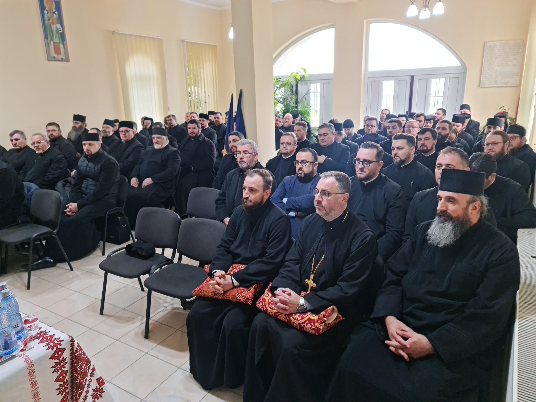 În prima parte a sesiunii, părintele protopop Ioan Bogdan a adresat celor prezenți cuvântul de bun venit. Apoi, Arhipăstorul Alba Iuliei a prezidat lucrările conferinței. Referatul din cadrul întrunirii a fost susținut de către părintele Lucian Șușu, preot al parohiei Războieni. De asemenea, părintele Virgil Avram, preot la Altarul bisericii din incinta Spitalului Municipal Aiud, și părintele Traian Ioan Duda, păstor al credincioșilor parohiei Ocna Mureș II, au prezentat completări și concluzii, în calitate de coreferenți. La final, Ierarhul nostru le-a adresat preoților prezenți cuvinte folositoare de suflet și îndemnuri duhovnicești.