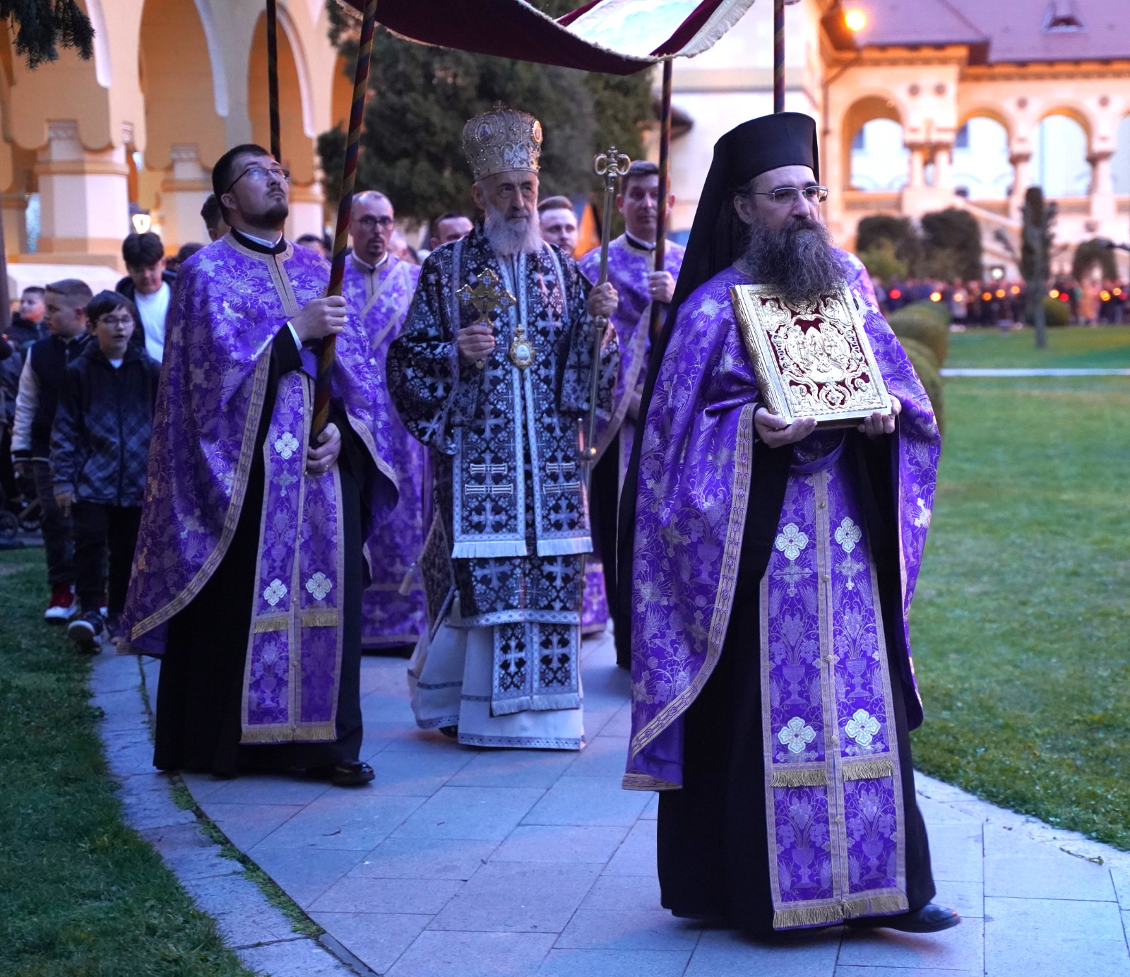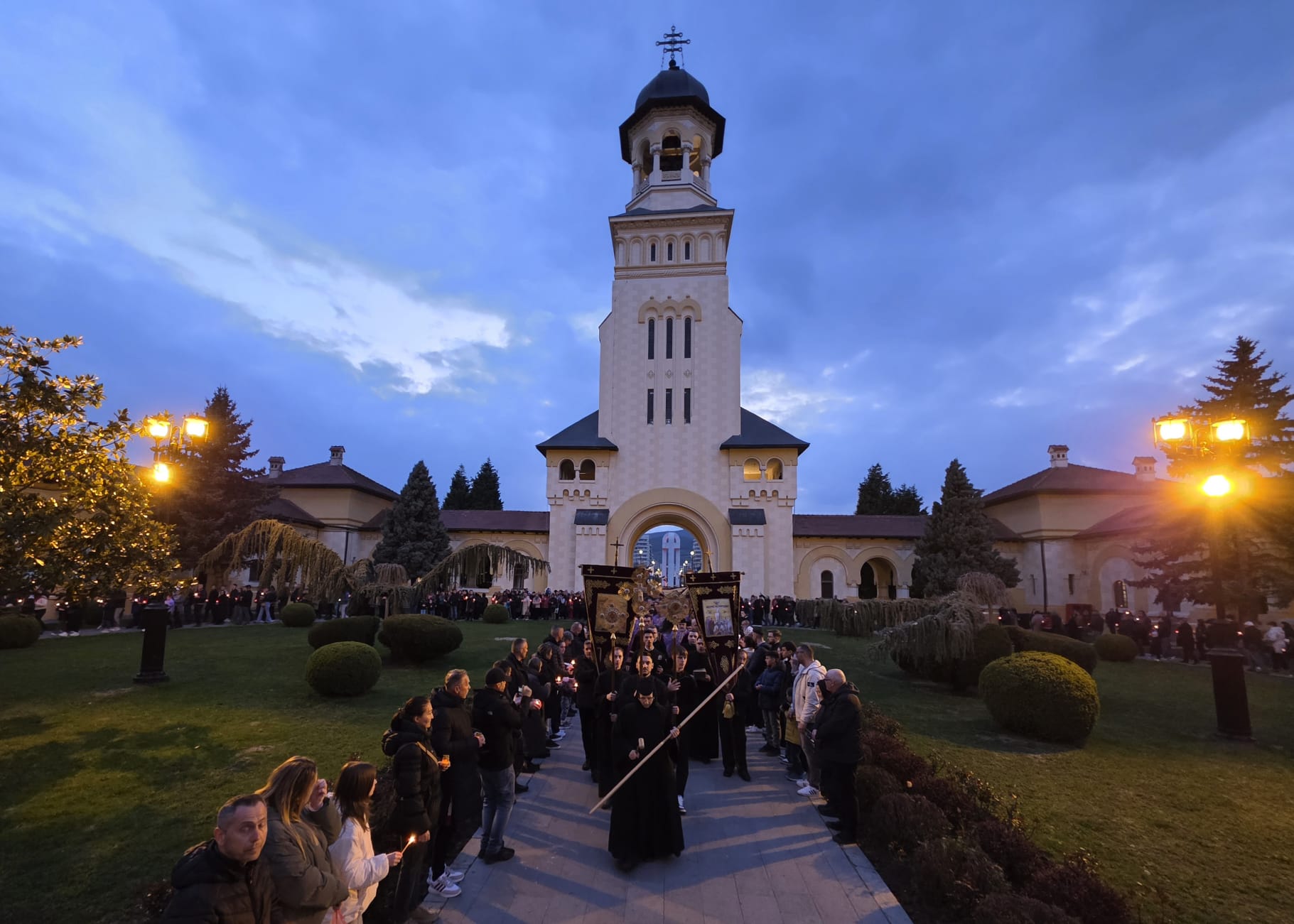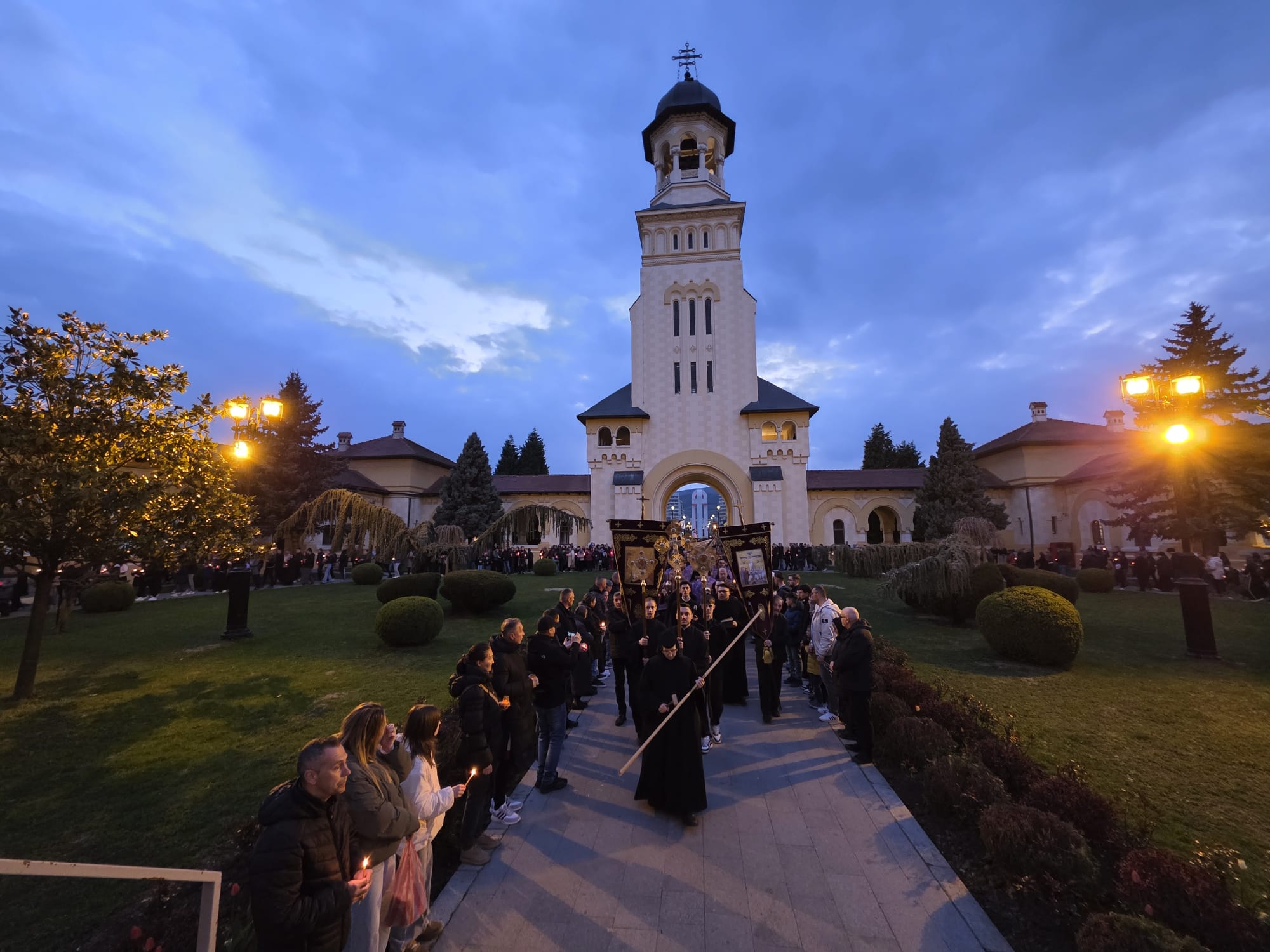 Vineri, 10 aprilie a.c., în a cincea zi a Săptămânii Sfintelor Pătimiri, Înaltpreasfințitul Părinte Irineu, Arhiepiscop al Alba Iuliei, a fost prezent la Catedrala arhiepiscopală din Cetatea Marii Uniri. Începând cu ora 18.00, Întâistătătorul Eparhiei noastre, înconjurat de un sobor de clerici, a oficiat Denia Prohodului Domnului (Utrenia Sâmbetei celei Mari), slujbă în care ne este pusă înainte îngroparea Mântuitorului Hristos și Pogorârea Sa la iad. De asemenea, în prezența a numeroși credincioși, Arhipăstorul nostru a rostit cuvântul de învățătură.