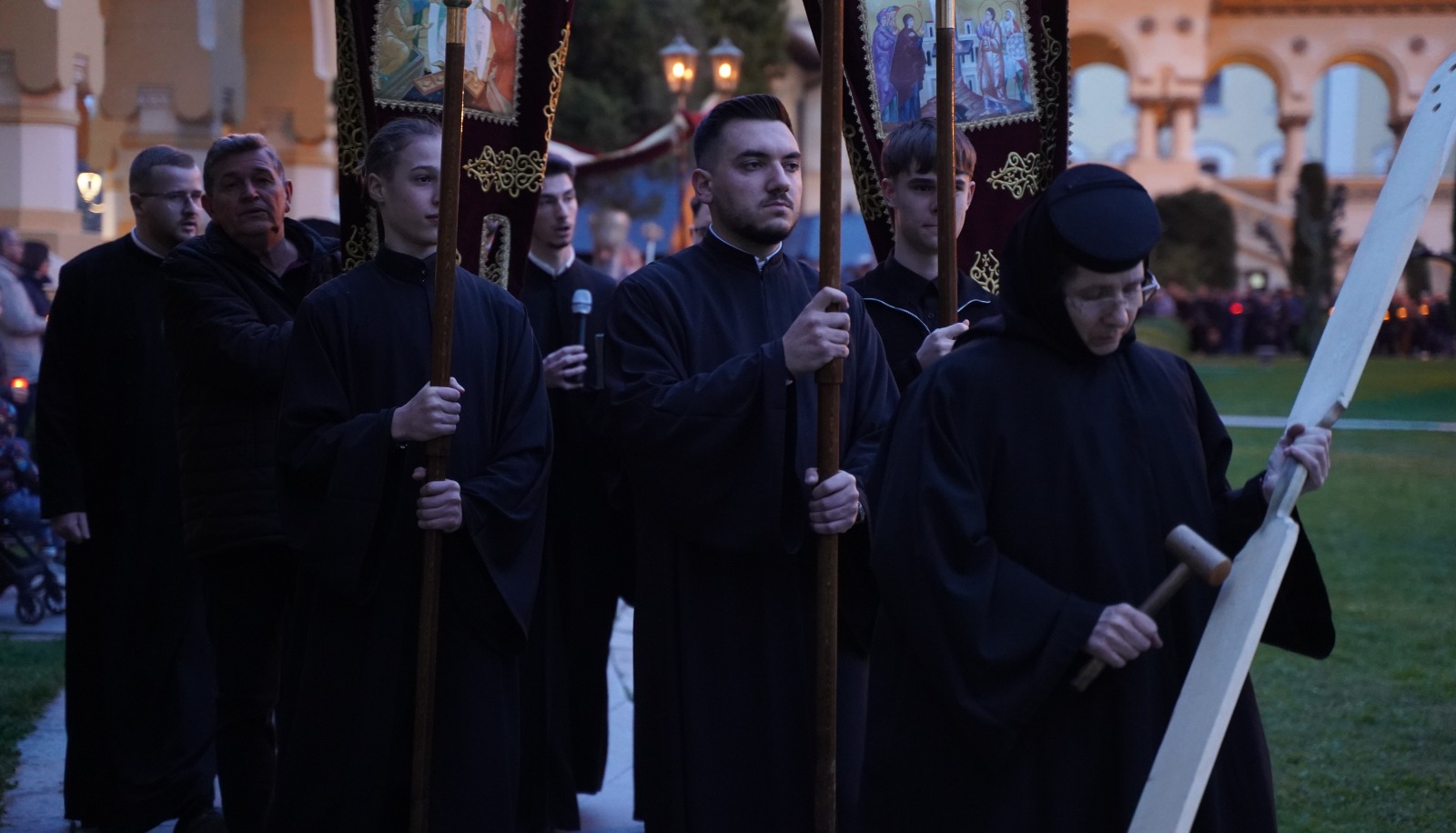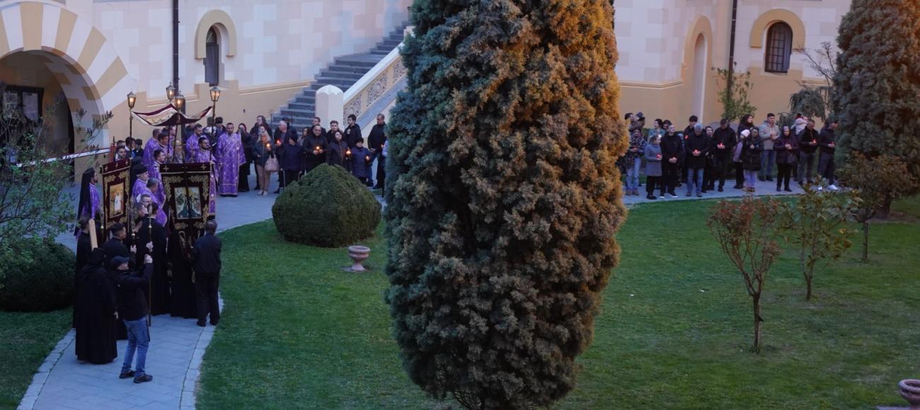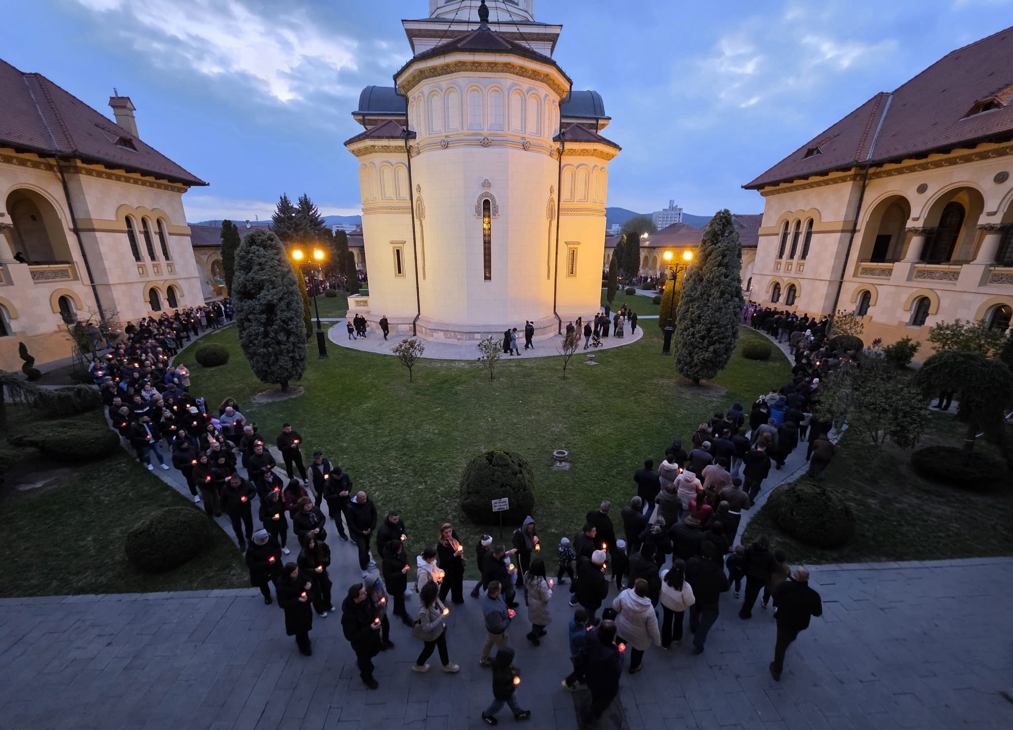 Vineri, 10 aprilie a.c., în a cincea zi a Săptămânii Sfintelor Pătimiri, Înaltpreasfințitul Părinte Irineu, Arhiepiscop al Alba Iuliei, a fost prezent la Catedrala arhiepiscopală din Cetatea Marii Uniri. Începând cu ora 18.00, Întâistătătorul Eparhiei noastre, înconjurat de un sobor de clerici, a oficiat Denia Prohodului Domnului (Utrenia Sâmbetei celei Mari), slujbă în care ne este pusă înainte îngroparea Mântuitorului Hristos și Pogorârea Sa la iad. De asemenea, în prezența a numeroși credincioși, Arhipăstorul nostru a rostit cuvântul de învățătură.