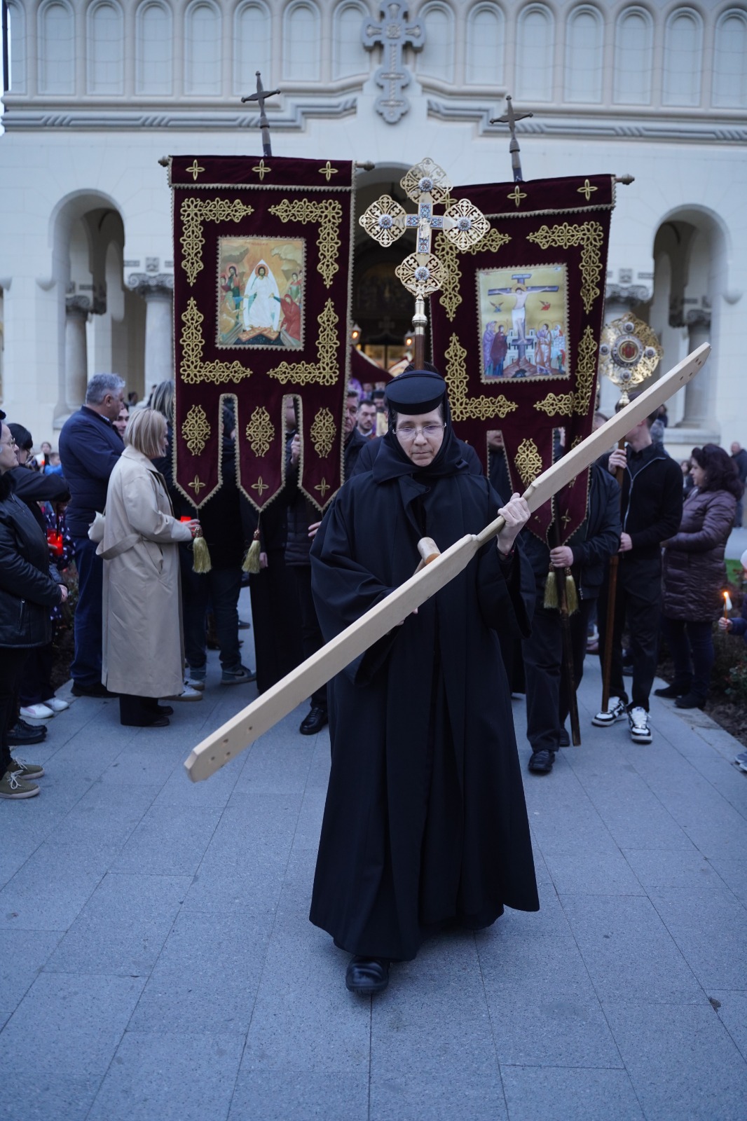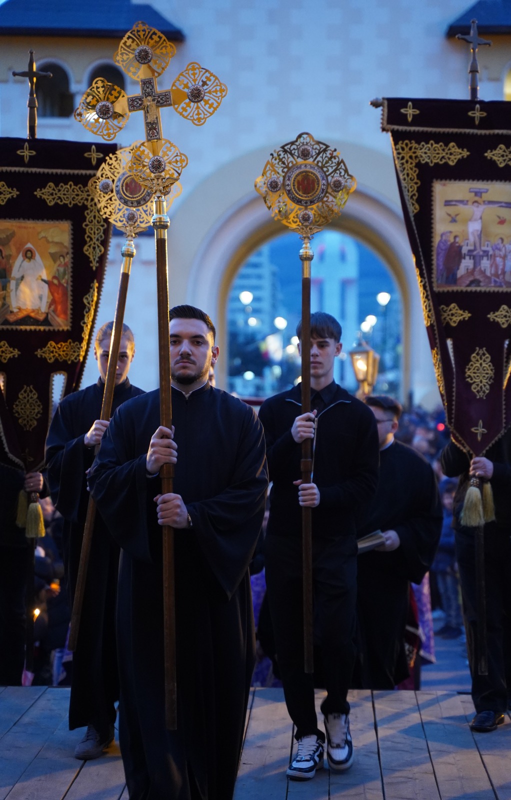 În ultima parte a Deniei, după Doxologia mare, a avut loc procesiunea cu Sfântul Epitaf în jurul Catedralei Încoronării, ceremonie care înfățișează și, totodată, actualizează drumul de la Golgota la mormântul Domnului Hristos. În cadrul ritualului au avut loc patru opriri, ocazie cu care au fost rostite patru ectenii speciale. La finalul procesiunii, în momentul intrării în locașul de închinare, credincioșii prezenți au trecut pe sub Sfântul Epitaf, evidențiind prin acest gest dorința de a deveni părtași ai morții și ai Învierii Mântuitorului Hristos.