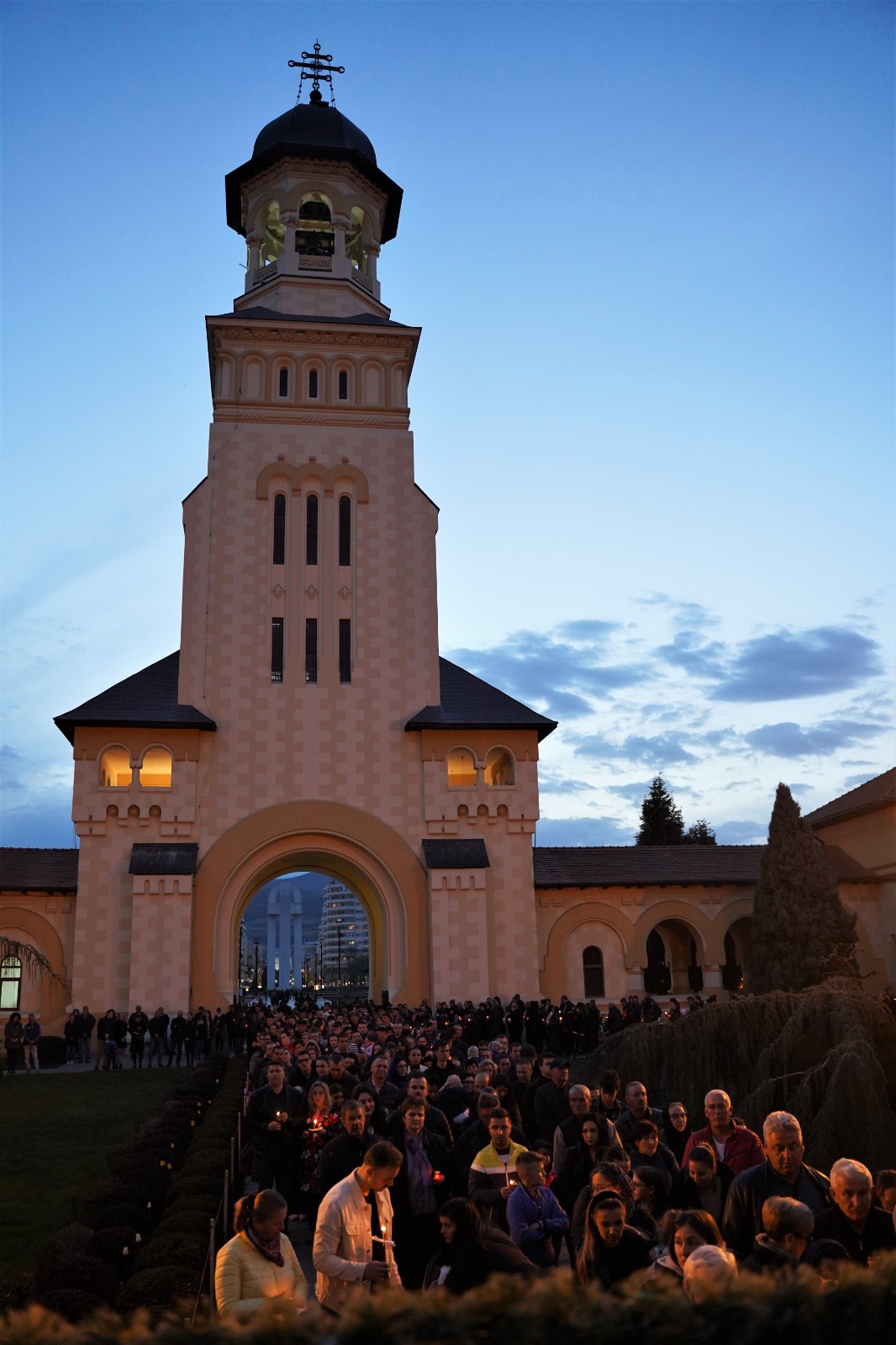 În ultima parte a Deniei, după Doxologia mare, a avut loc tradiționala procesiune cu Sfântul Epitaf în jurul Catedralei Reîntregirii, ceremonie care înfățișează și, totodată, actualizează drumul de la Golgota la mormântul Domnului Hristos. În cadrul ritualului au avut loc patru opriri, ocazie cu care au fost rostite patru ectenii speciale. La finalul procesiunii, în momentul intrării în locașul de închinare, credincioșii prezenți au trecut pe sub Sfântul Epitaf, evidențiind prin acest gest dorința de a deveni părtași ai morții și învierii Mântuitorului.