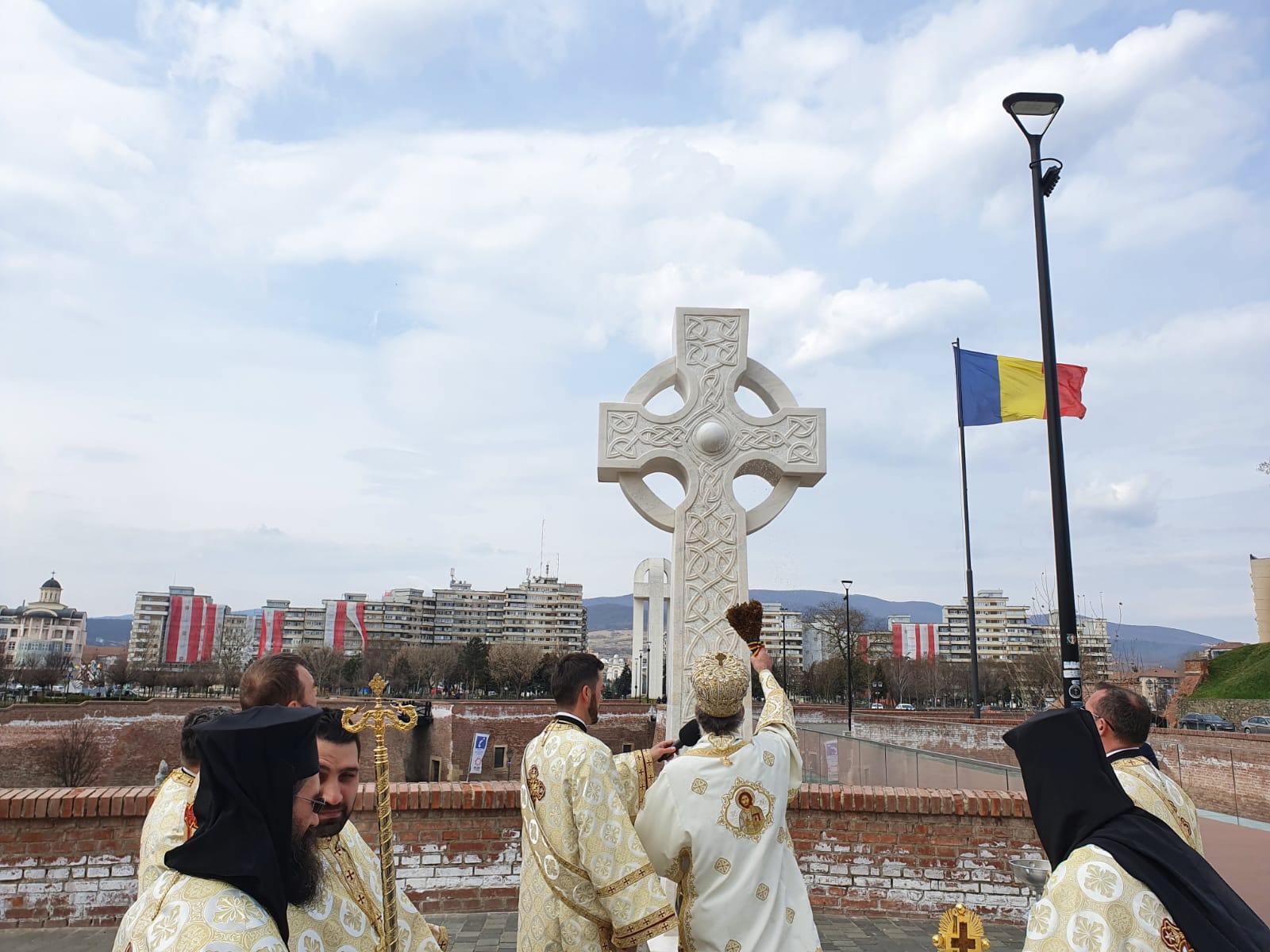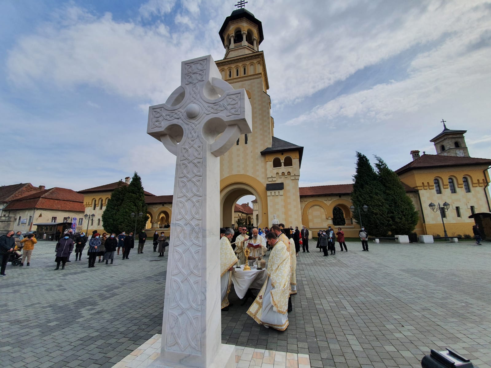 De asemenea, în această zi se împlinesc 100 de ani de la momentul punerii pietrei de temelie a Catedralei Reîntregirii din orașul Marii Uniri, eveniment petrecut pe data de 28 martie 1921, în a doua zi de Paști. Pentru a marca în mod solemn evenimentul din în urmă cu un secol, soborul de preoți și diaconi, în frunte cu Părintele Arhiepiscop Irineu, dimpreună cu toți credincioșii prezenți la Dumnezeiasca Liturghie, au ieșit, după Sfânta Liturghie, pe esplanada din fața ansamblului Catedralei Încoronării. Cu acest prilej, a fost oficiată slujba de sfințire a unei cruci monumentale (numită „Crucea Bucuriei”), executată ingenios, cu un rafinament artistic deosebit.