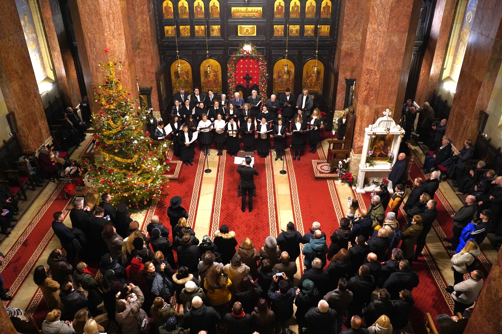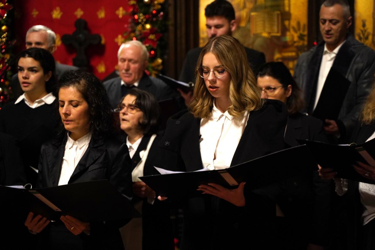 Duminică, 21 decembrie 2025, Catedrala Reîntregirii și Încoronării din orașul Marii Uniri a găzduit un eveniment cultural-artistic cu totul deosebit, în contextul sezonului liturgic al Postului Nașterii Mântuitorului. Cu acest prilej, Înaltpreasfințitul Părinte Irineu, Arhiepiscop al Alba Iuliei, a fost prezent în mijlocul credincioșilor din vechiul Bălgrad. De la ora 19.00, Întâistătătorul Eparhiei noastre a participat la tradiționalul concert de colinde susținut de Corala „Sfânta Treime” a Catedralei Reîntregirii, dirijată de tânărul Antonio Rotar. Evenimentul muzical-artistic și duhovnicesc s-a desfășurat după slujba Vecerniei mari, oficiată începând cu ora 18.00 de către un sobor de clerici.