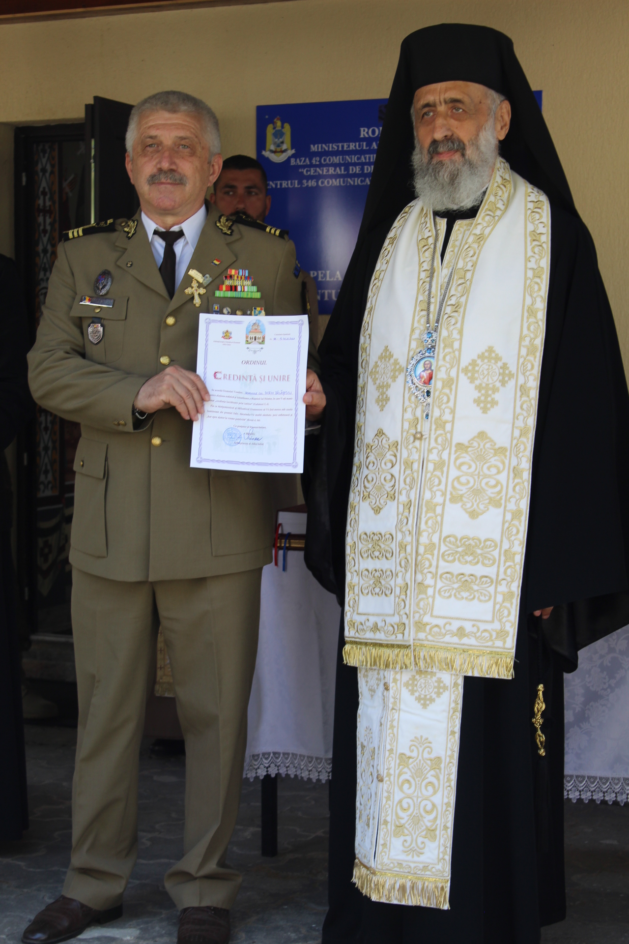 La final slujbei, în semn de aleasă prețuire șirecunoștință, Înaltpreasfințitul Părinte Arhiepiscop Irineu a primit din partea conducerii Unității Militare 01760 Sebeş Placheta Omagială a instituției. În continuare, domnul Colonel Dr. Sorin-Silviu Bălășescu, Comandantul Bazei 42 „Grl. Bgd. Traian Moșoiu” din Râșnov, a primit din partea Chiriarhului nostru Ordinul „Credință și Unire”, în semn de apreciere pentru slujirea rodnică și folositoare a Bisericii lui Hristos. De asemenea, tuturor celor care au contribuit la amenajarea și înfrumusețarea capelei din incinta Unității Militare 01760 Sebeş le-au fost oferite Diplome de aleasă cinstire.