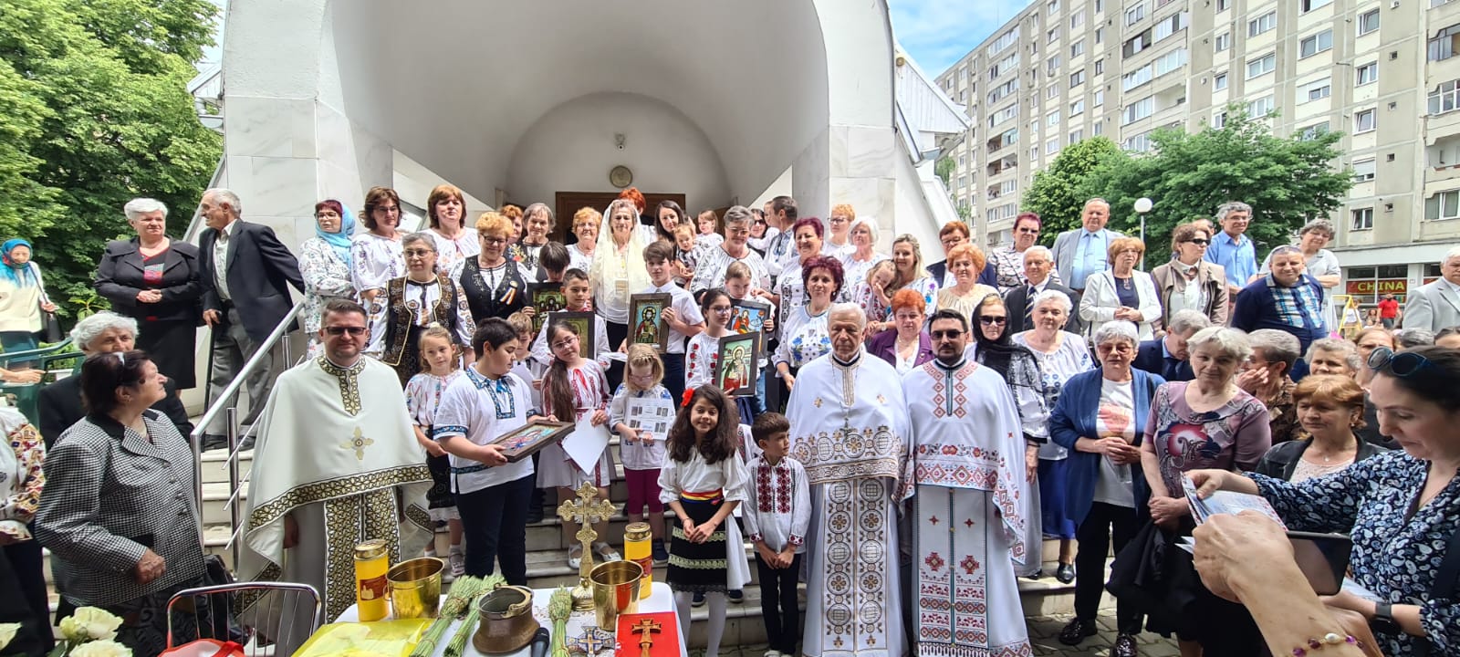 Momentul festiv a fost special ales, Duminica Rusaliilor, întrucât, alături de copii și mulți credincioși, au purtat costumul popular, ceea ce a oferit o notă specifică evenimentului. Preoții parohi mulțumesc pe această cale doamnei profesoare Maria Pârvu Kulcsar pentru implicare, precum și tuturor persoanelor, credincioșilor și credincioaselor care, pe parcursul acestui proiect, au ajutat la buna desfășurare. Conștienți fiind că această harismă a pictării pe sticlă este o lucrarea a Duhului Sfânt, preoții parohi mulțumesc bunului Dumnezeu pentru frumoasa realizare și nădăjduiesc că sufletele curate ale copiilor vor rămâne pentru mult timp icoane ale Împăratului ceresc.