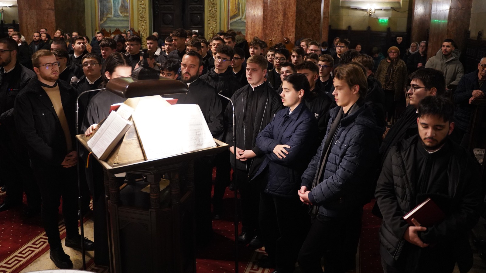 Vineri, 15 noiembrie 2024, în prima zi a Postului Nașterii Domnului, Înaltpreasfințitul Părinte Irineu, Arhiepiscop al Alba Iuliei, a poposit la Catedrala Reîntregirii din Cetatea Marii Uniri. Începând cu ora 18.00, Ierarhul nostru a participat la slujba Vecerniei și a Acatistului Preasfintei Născătoare de Dumnezeu, oficiată în prezența elevilor Seminarului Teologic Ortodox „Sfântul Simion Ștefan”, a studenților Facultății de Teologie Ortodoxă din Alba Iulia și a numeroși credincioși dreptslăvitori. La final, Întâistătătorul Eparhiei noastre a adresat o meditație duhovnicească tinerilor teologi, cu ocazia programului liturgic al Săptămânii duhovnicești.