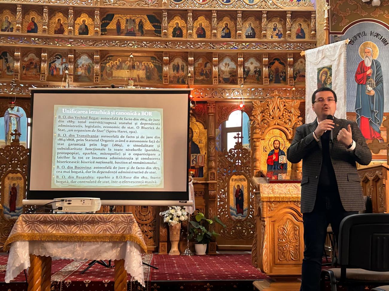 În partea a doua a întâlnirii, domnul Mircea Gheorghe Abrudan, cercetător științific la Institutul de Istorie „George Barițiu” al Academiei Române din Cluj-Napoca, a susținut o prezentare amplă dedicată Centenarului Patriarhiei Române (1925-2025). În intervenția sa, istoricul a subliniat importanța momentului de înființare a Patriarhiei ca o încununare a procesului de maturizare instituțională și spirituală a Bisericii Ortodoxe Române după Marea Unire din 1918.