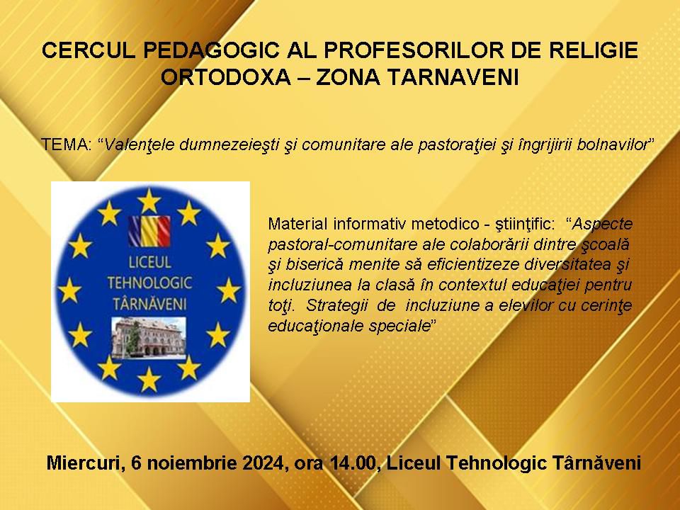 Empatia nu are un scenariu bine stabilit, deoarece nu există o modalitate corectă sau greșită de a face asta. Empatia înseamnă pur și simplu să asculți, să păstrezi spațiu, să nu judeci, să te conectezi emoțional și să comunici mesajul vindecător al sufletului. Cuvintele simple, însă cu o bogată încărcătură duhovnicească, reprezintă sinteza celei de-a doua activități metodico-științifice, care a avut loc în data de 6 noiembrie, la Liceul Tehnologic din Târnăveni. Manifestarea a fost coordonată cu multă elocință și grijă de către doamna prof. Mădălina Constantin. Intitulată „Valențe dumnezeiești și comunitare ale pastorației și îngrijirii bolnavilor”, activitatea s-a desfășurat sub forma unei prezentări succinte a principalelor aspecte pastorale și misionare ale colaborării dintre Școală și Biserică, ce au drept finalitate eficientizarea incluziunii la clasă în contextul educației comunitare, accentuându-se importanța strategiilor de incluziune a elevilor cu cerințe educaționale speciale.
