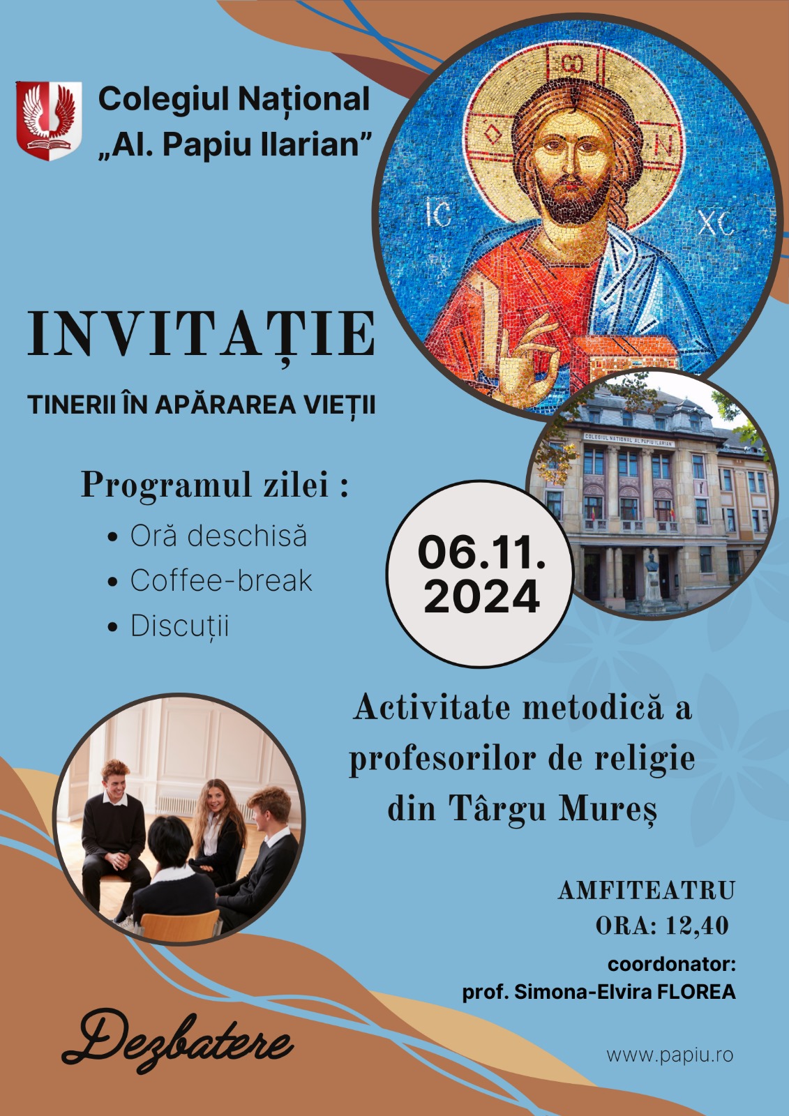 Rațiunea construiește mereu viața pe pământul curat al inimii. Tocmai de aceea, tinerii trebuie încurajați să se manifeste, să își susțină punctele de vedere și să le argumenteze pentru a-i încuraja și pe ceilalți tineri să trăiască frumos și echilibrat. Acestea ar putea reprezenta elementele cheie ale primei activități metodico-științifice desfășurate în data de 6 noiembrie, la Colegiul Național „Alexandru Papiu Ilarian” din Târgu Mureș. Acțiunea a fost coordonată cu multă atenție și tenacitate de către doamna prof. Simona Elvira Florea. În cadrul activității, elevii clasei a XI-a au organizat o „dezbatere de tipul Karl Popper”, având ca titlu sugestiv „Tinerii în apărarea vieții”. Elevii prezenți au argumentat importanța muzicii în viața adolescenților, precum și nevoia de modele autentice în cadrul unei societăți secularizate și supusă mereu schimbării.