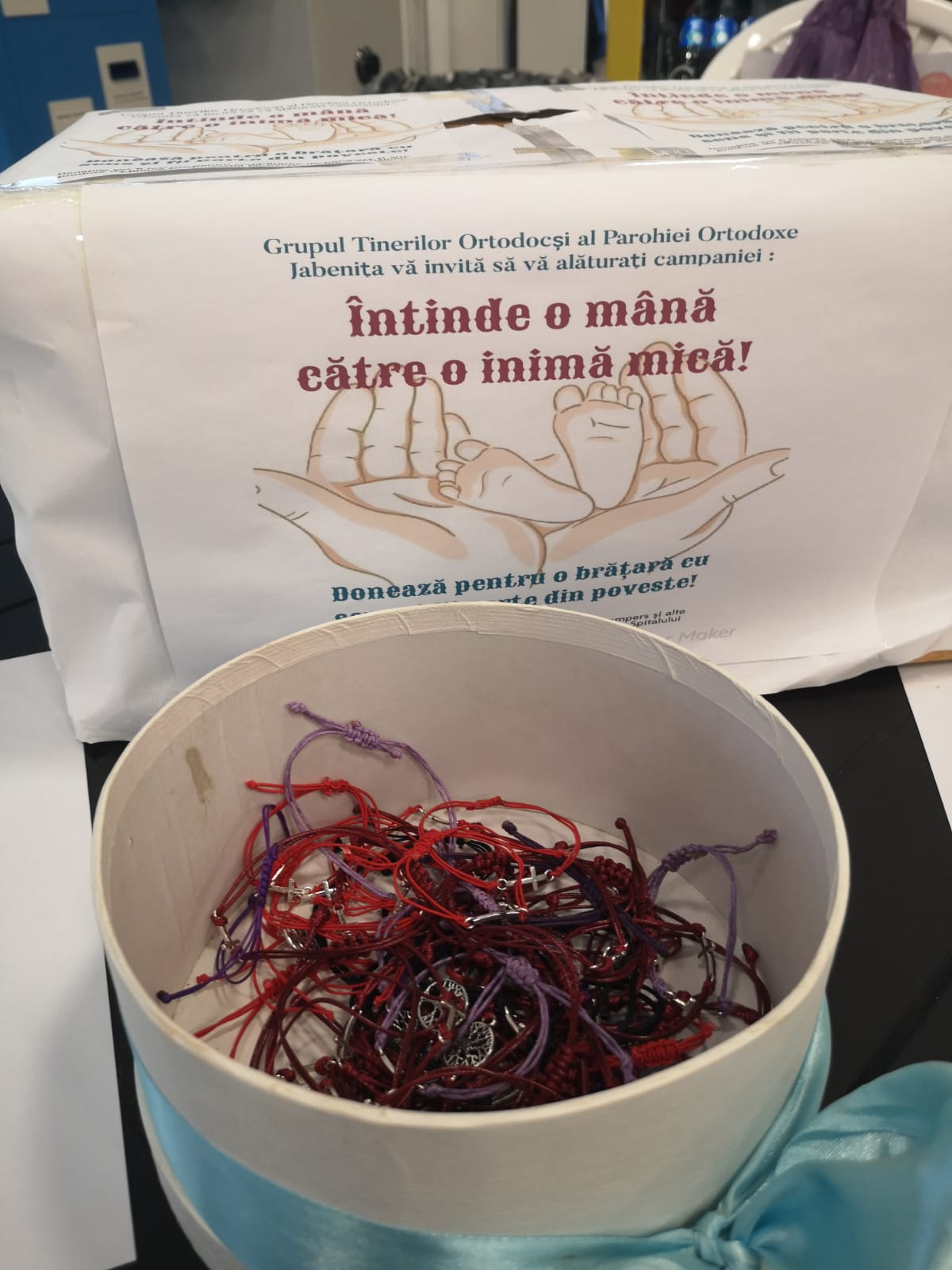 În cadrul acestor întâlniri au avut loc și diferite discuții și problematizări referitoare la prețuirea vieții și la acele aspecte care depind de cei din jur ca mama și noul născut să aibă parte de sprijin. În acest sens, Grupul tinerilor ortodocși din Jabenița a lansat campania „Întinde o mână către o inimă mică”, acțiune ce presupune donarea unei sume de bani și primirea în dar a unei brățări la alegere. Valoarea totală adunată va fi utilizată cu scopul achiziționării produselor de igienă pentru nou născuții de pe secția de neonatologie a Spitalului din Reghin. Astfel, Parohia Ortodoxă Jabenița a încheiat un parteneriat cu Spitalul Municipal „Dr. Eugen Nicoară” din Reghin, tinerii muncind din greu pentru realizarea celor peste 200 de brățări și, totodată, pentru voluntariatul depus la standul unde aceștia au promovat munca și dorința inimii lor.
