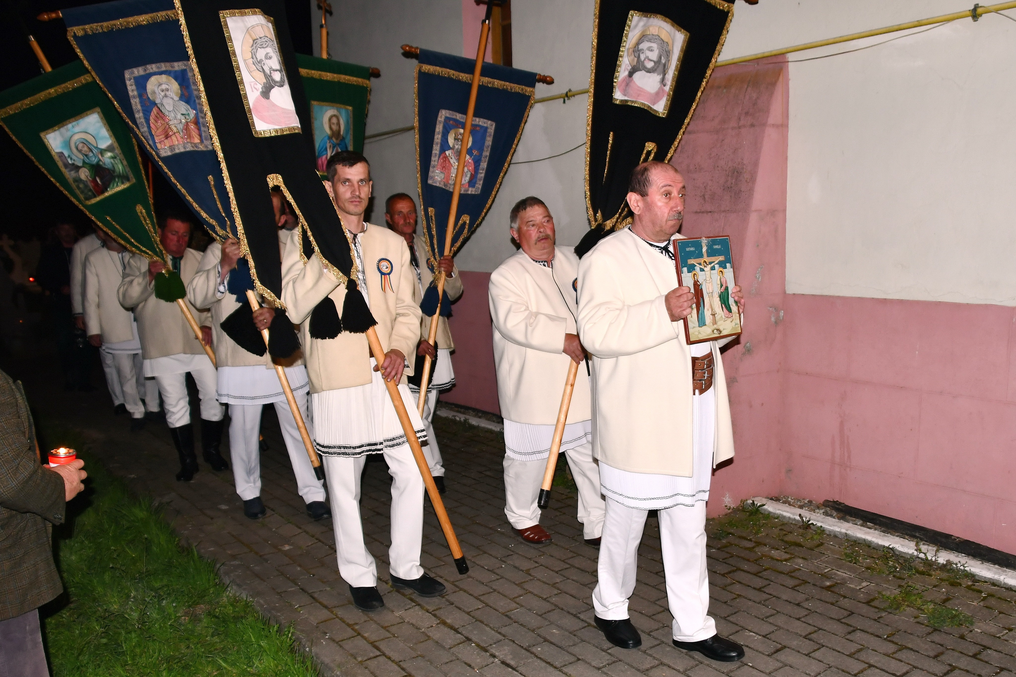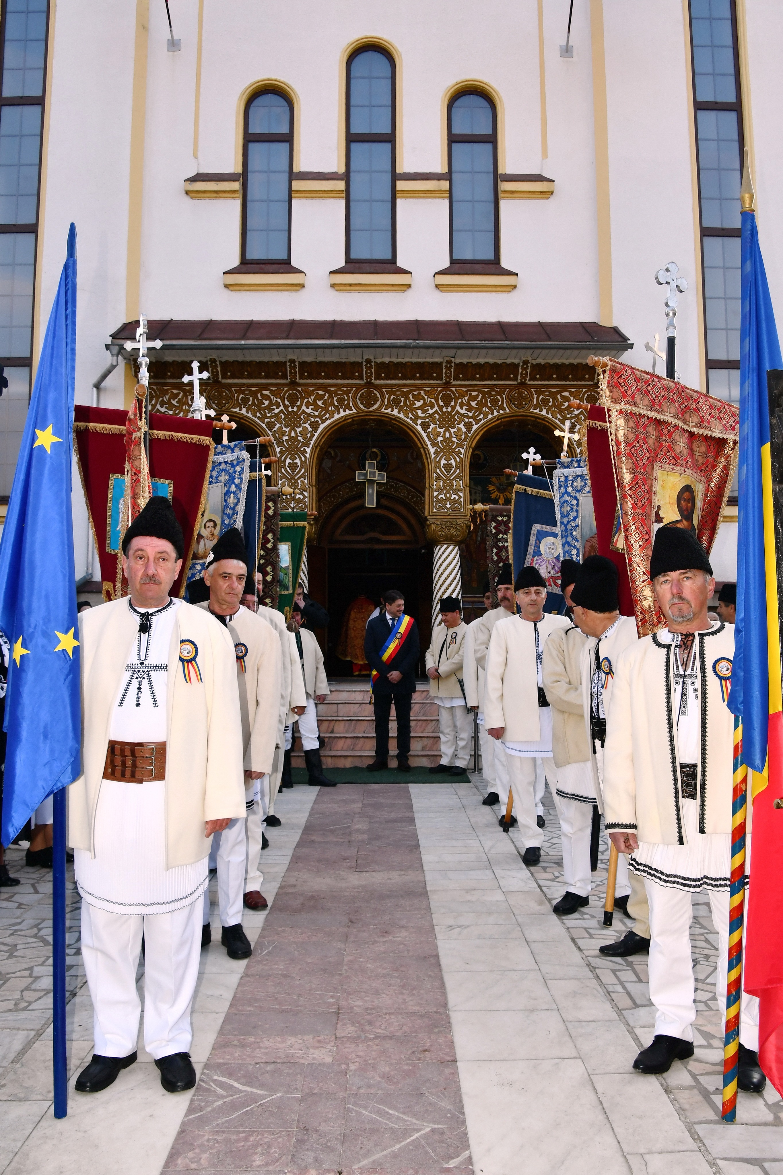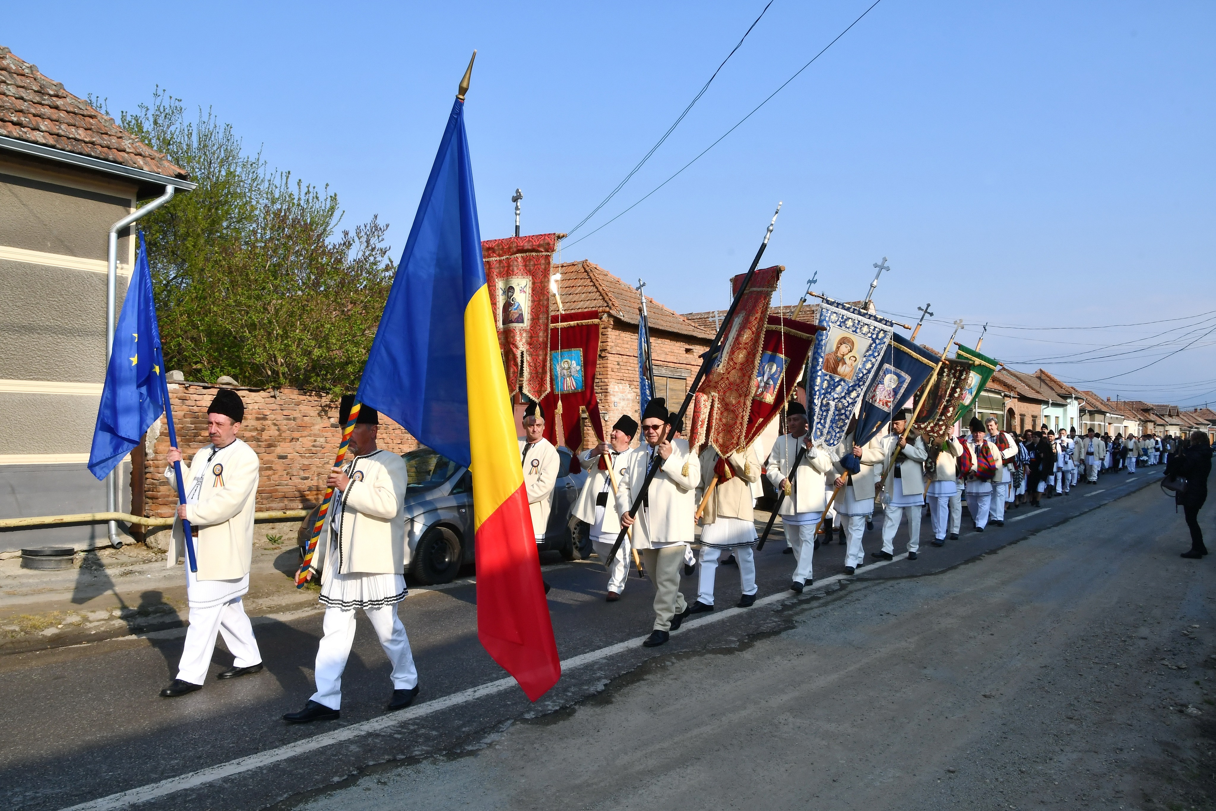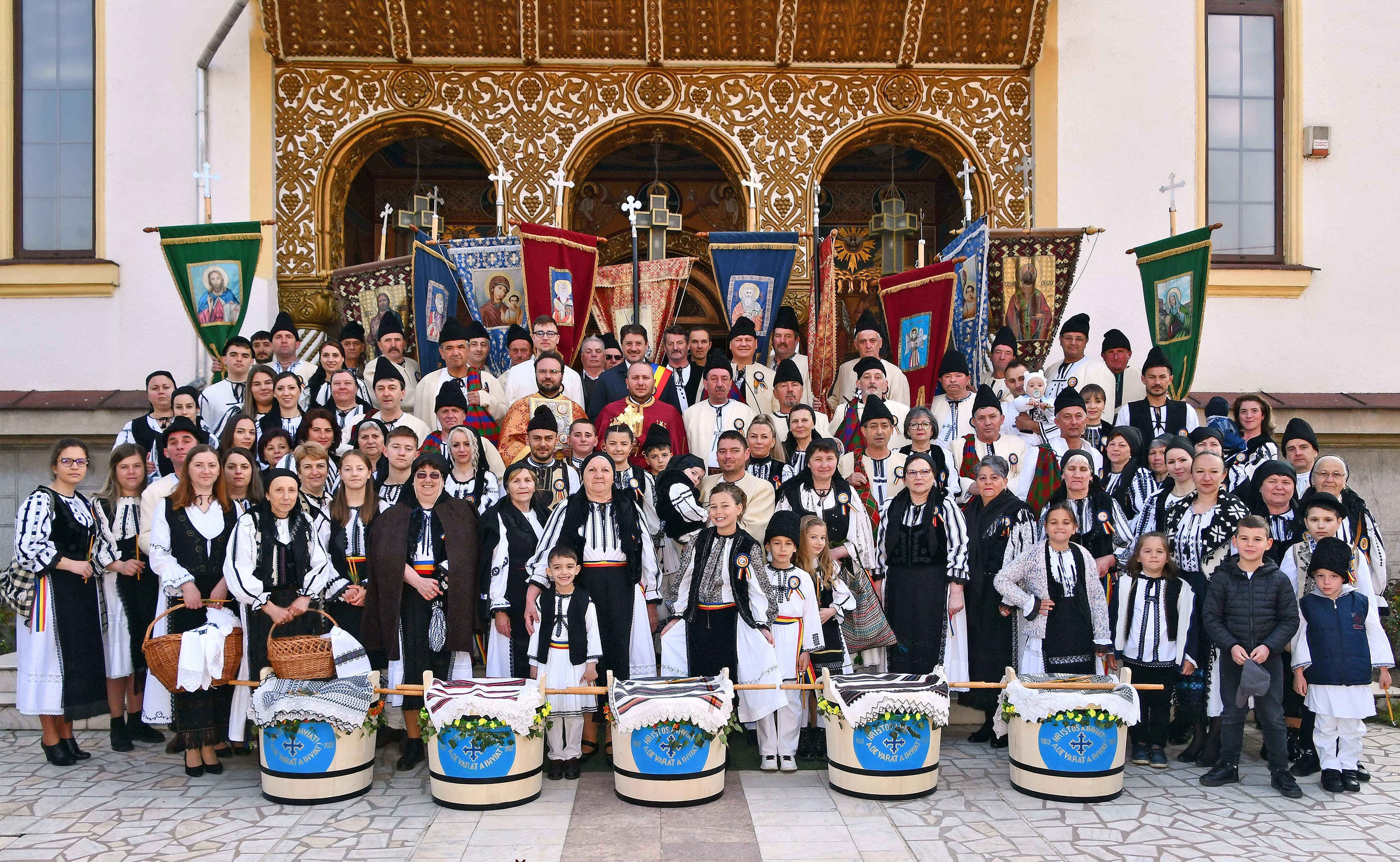 Păștenii iau desagii cu pâinea, parastasele și prescurile, iar femeile păștene iau ciuberele frumos împodobite cu flori și verdeață. Apoi, întreg alaiul se îndreaptă înapoi la biserică unde este oficiată Dumnezeiasca Liturghie a Sfântului Vasile cel Mare. În cadrul slujbei, păștenii care au primit dezlegare de la duhovnic se împărtășesc cu Sfintele Taine. Este o încântare să privești cum toți păștenii, îmbrăcați în straie populare, stau încolonați doi câte doi, mai întâi bărbații, apoi femeile, împărtășindu-se cu Trupul și Sângele Domnului și sărutând sfintele icoane. După Dumnezeiasca Liturghie, este oficiată o slujbă de pomenire pentru cei trecuți în veșnice. La ieșirea din biserică, nepoții și copiii păștenilor, îmbrăcați de asemenea în straie populare, oferă tuturor participanților la slujbă câte un colac și un pahar de vin în memoria celor dispăruți din leat.