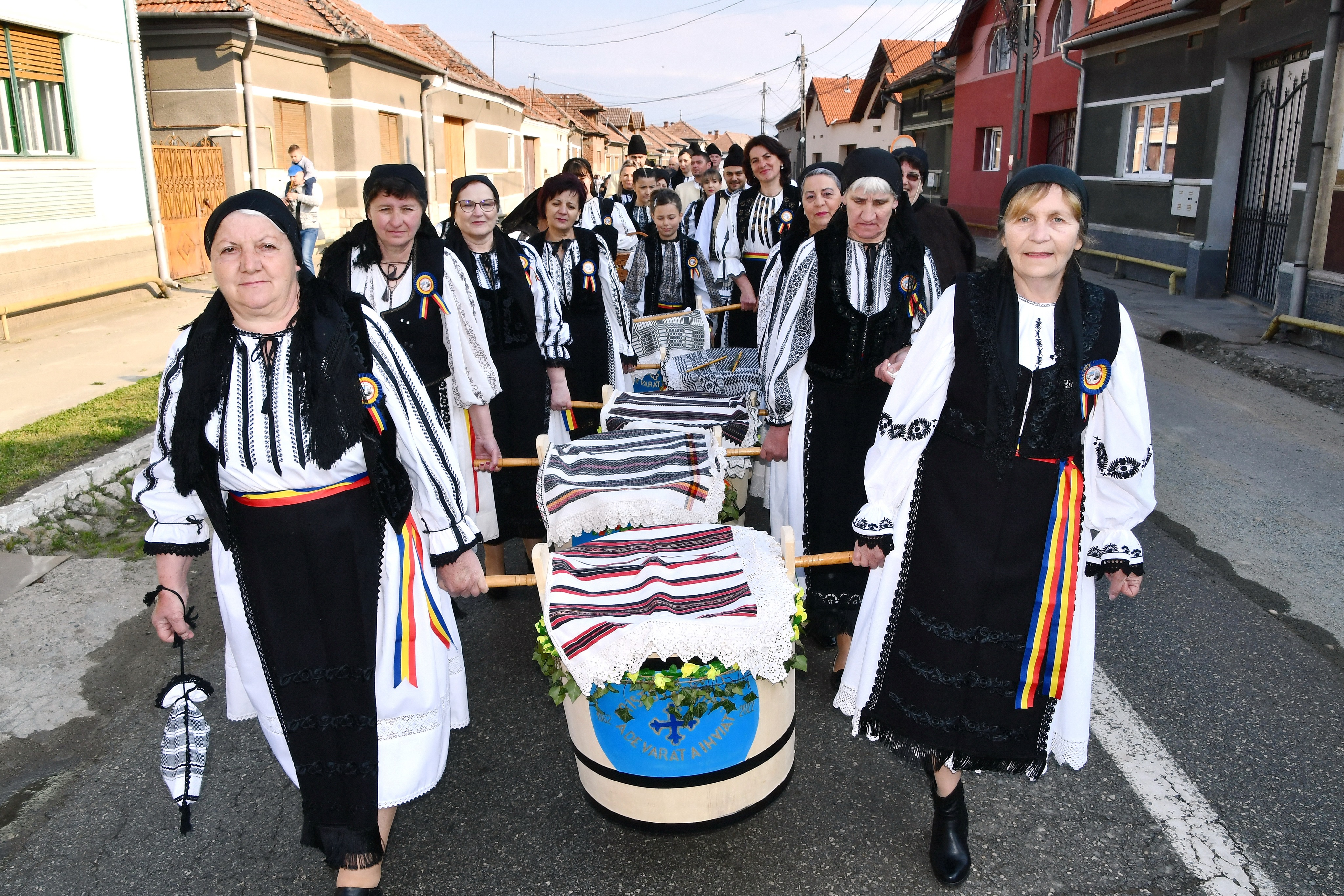 În Duminica de Florii, toți păștenii, împreună cu preoţii parohi, se adună la casa gazdei, unde se stabilește vinul pentru paști. De asemenea, ciuberele sunt împodobite cu flori și panglici tricolore, iar lumânările care se împart credincioșilor în Joia Mare sunt ornamentate cu panglici tricolore. În același timp, coșurile sunt asortate cu ștergare și verdeață, sunt aerisiți desagii pentru pâine și este stabilit programul pentru Săptămâna Mare.