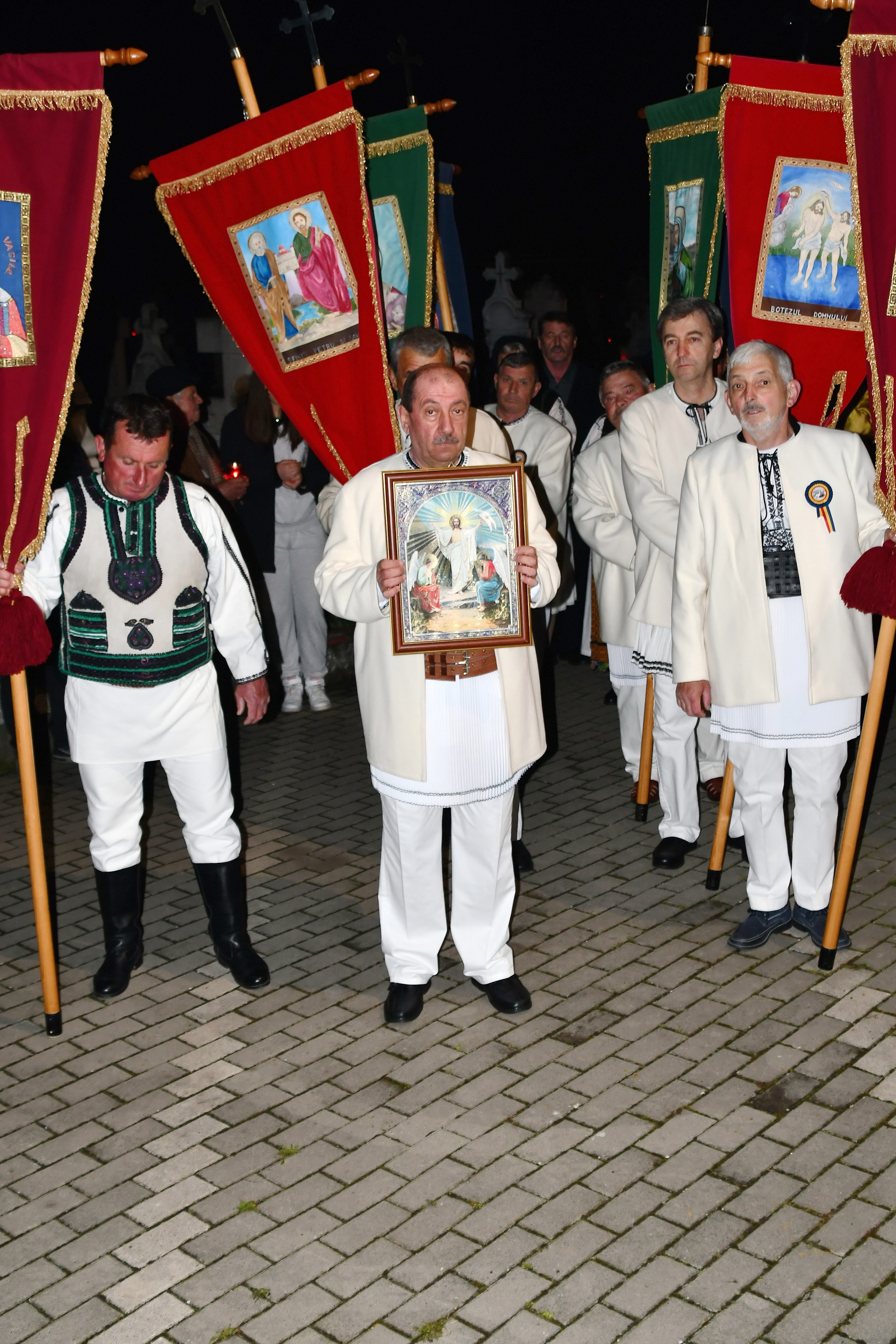 În zilele următoare, păștenii participă activ la toate celelalte activități ale bisericii, asigurând „paza” Sfântului Epitaf („Sfântului Mormânt”) în noaptea de vineri, iar sâmbătă după-amiază se taie pâinea, se pune vinul, se așează în ciubere și se păstrează în biserică până la Slujba de Înviere. Noaptea, la ora 0.00, este oficiată Utrenia Sfintei Învieri, așteptată cu nerăbdare de către întreaga comunitate creștină. După ce preotul rostește: „Veniți de luați Lumină!”, urmează procesiunea de ocolire a bisericii, iar după oficierea Sfintei Liturghii, paștile – sfințite în cadrul slujbei – sunt împărțite de către pășteni tuturor credincioșilor prezenți.