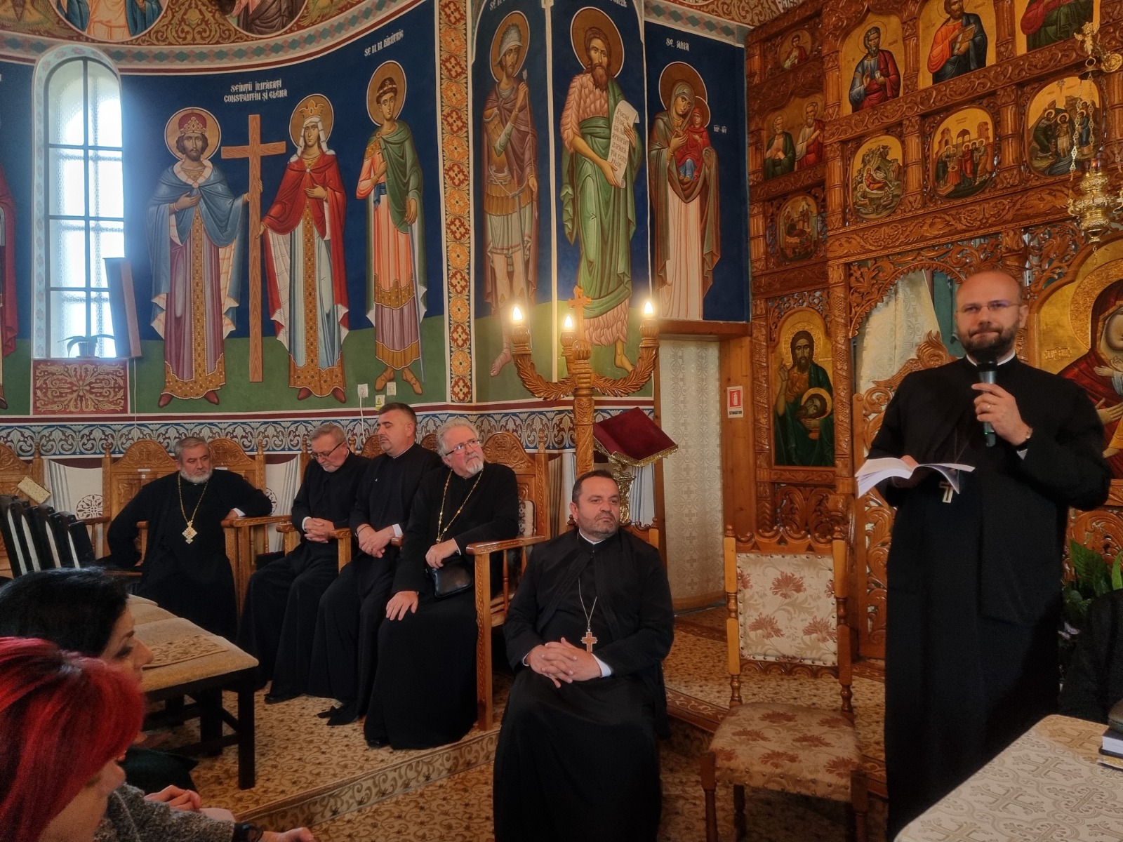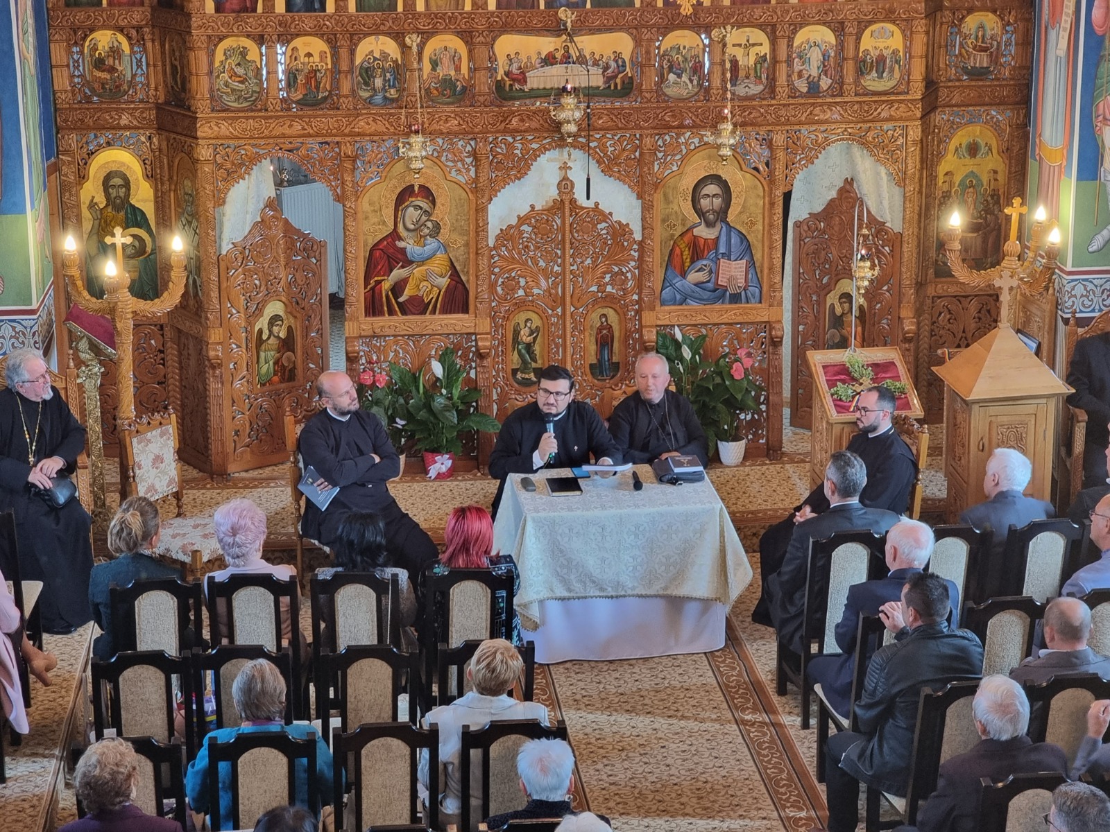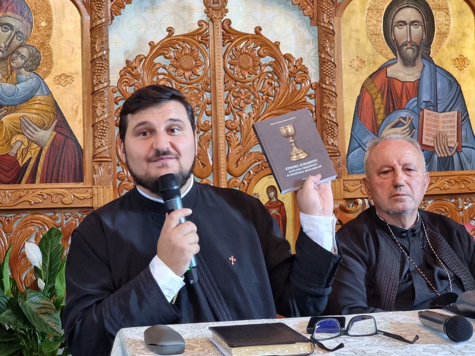 În continuare, de la ora 12:00, a avut loc manifestarea științifică propriu-zisă: lansarea volumului „Ethosul euharistic și evlavia creștinului în societatea secularizată”, elaborat de către părintele paroh Nicolae Aloman, Inspector de editură și tipărituri în cadrul Eparhiei noastre. Lucrarea reprezintă rezultatul cercetărilor întreprinse de către preacucernicia sa pe parcursul studiilor doctorale, realizate sub coordonarea Înaltpreasfințitului Părinte Arhiepiscop Irineu.