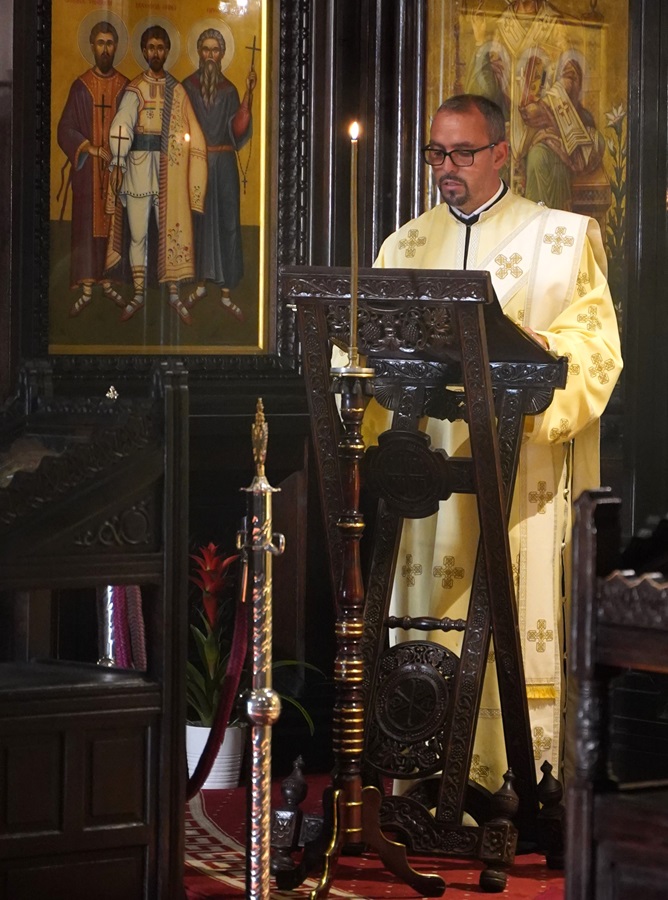 Începând cu ora 8.00, Întâistătătorul Eparhiei noastre, înconjurat de un sobor de preoți și diaconi, a oficiat Dumnezeiasca Liturghie a Sfântului Ioan Gură de Aur. În cadrul slujbei, la momentul rânduit, monahul Rafael, viețuitor al obștii Mănăstirii Afteia, a fost hirotonit întru ierodiacon.