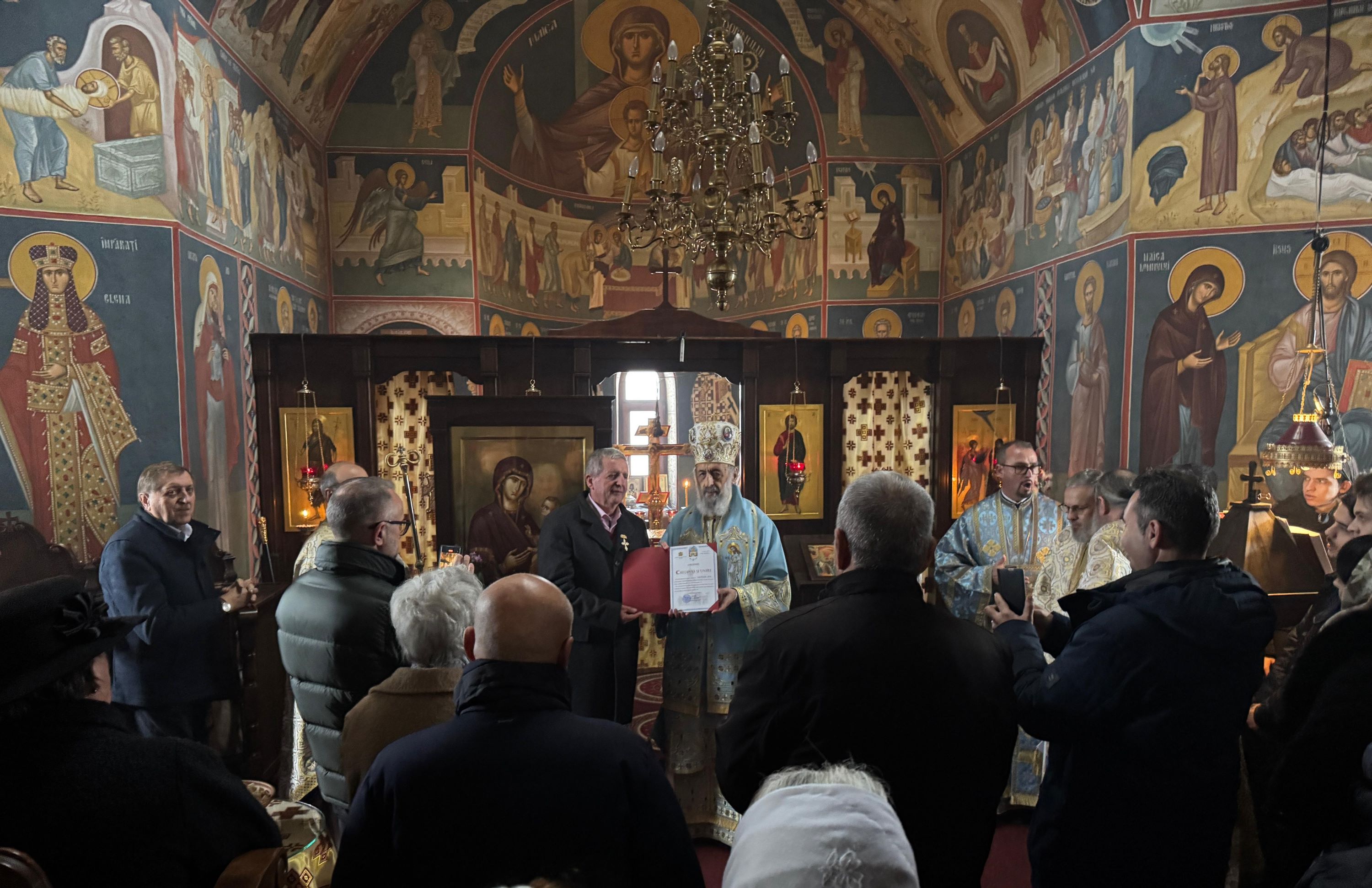 La finalul Dumnezeieștii Liturghii, în semn de aleasă prețuire și apreciere pentru activitatea pastoral-misionară și administrativ-gospodărească depusă cu râvnă apostolică în ogorul Bisericii Ortodoxe strămoșești, părintele arhimandrit Andrei Barbu a primit din partea Întâistătorului Eparhiei nostre Ordinul „Donum Sacrum Unitatis”. De asemenea, Arhipăstorul nostru i-a oferit domnului Gheorghe Iova Ordinul „Credinţă şi Unire”, în semn de apreciere pentru sprijinul oferit la edificarea și înfrumusețarea noului arhondaric din incinta așezământului călugăresc.