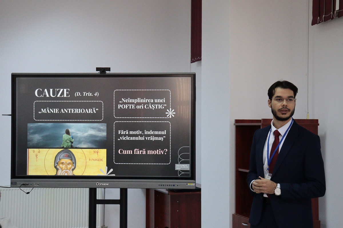În cadrul manifestării, au prezentat referate nouă studenți care provin de la Facultățile de Teologie Ortodoxă din Iași, Sibiu, Cluj-Napoca, Târgoviște și Alba Iulia. Apoi, părintele Oliviu Botoi a susținut prelegerea intitulată „Noțiuni de metogologie privind studiul Teologiei Ortodoxe, în viziunea profesorului Jean-Claude Larchet”. La final, părintele arhid. Răzvan Brudiu a moderat sesiunea specială dedicată dezbaterilor, fiind oferite răspunsuri și concluzii pe marginea tuturor întrebărilor adresate de studenții participanți.