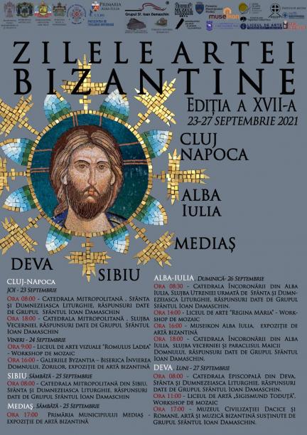 Vineri, 24 septembrie, de la ora 9.00, la Liceul de Arte Vizuale „Romulus Ladea” din Cluj-Napoca, se va desfăşura un atelier de mozaic, unde cei interesați pot vedea etapele și modalitatea realizării unei astfel de lucrări. În continuare, de la ora 16.00, la Galeriile „Byzantia” de la subsolul bisericii „Învierea Domnului” din municipiul Cluj-Napoca (strada Viilor), va avea loc o expoziție de artă. De asemenea, sâmbătă, 25 septembrie, la Primăria Municipiului Mediaș, se va desfășura o expoziție de artă bizantină, începând cu ora 17.00.