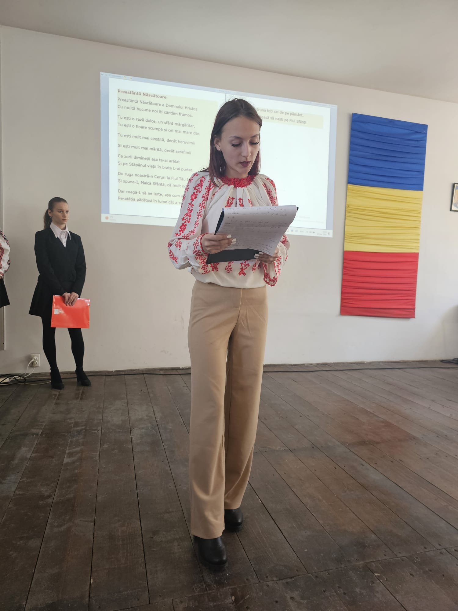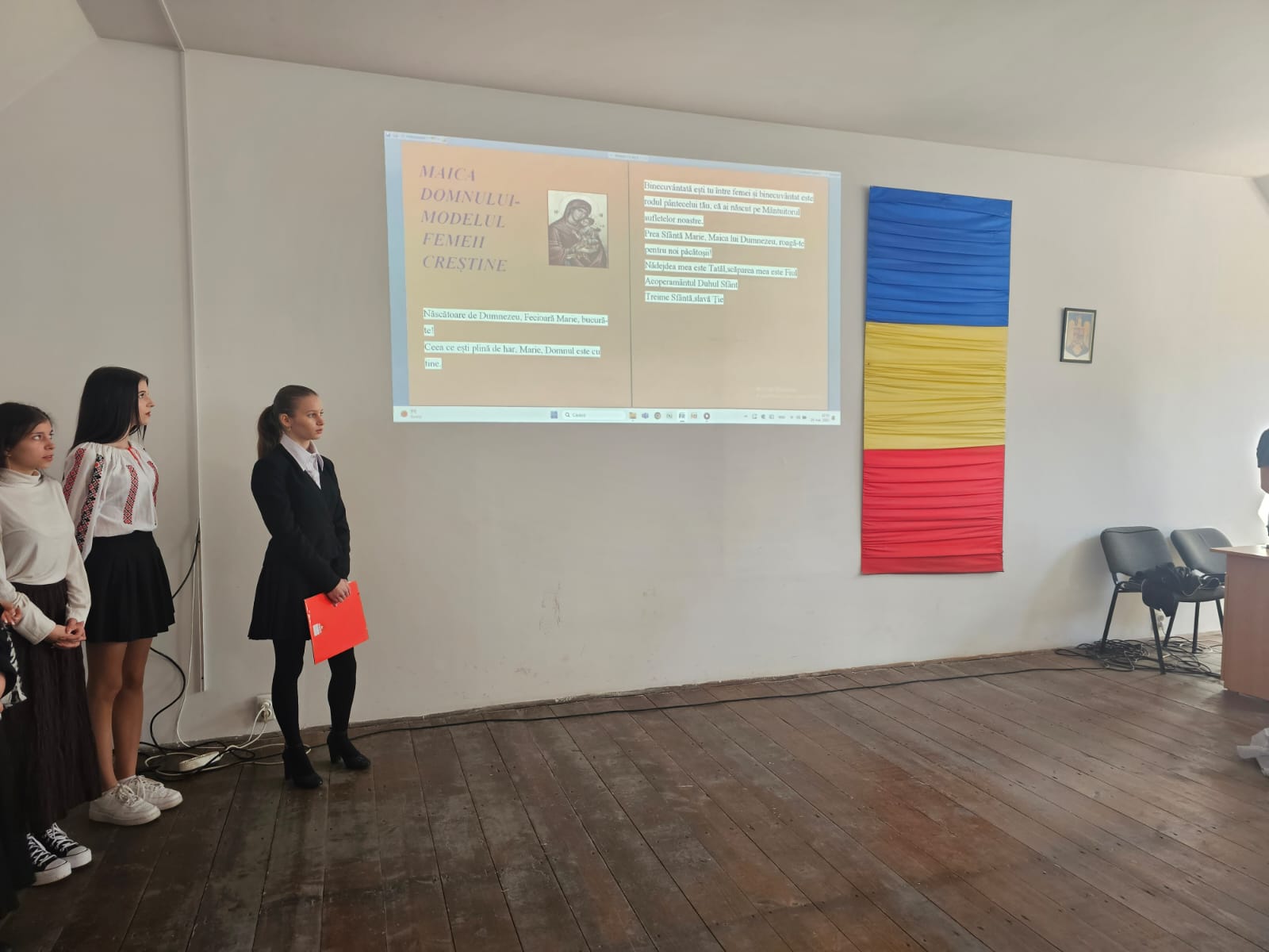 Cu acest prilej, elevii școlii au prezentat un program artistic dedicat femeii creștine, ce o are ca model pe Maica Domnului. Activitatea a fost structurată în mai multe părți. Prin intermediul unei scenete numite „Inima mamei”, al unor pricesne și poezii religioase, s-a adus cinstire Maicii Domnului, mama noastră a tuturor. În cadrul aceleiași activități, s-au expus spre vizionare mai multe icoane pe sticlă realizate de câțiva elevi talentați ai școlii.