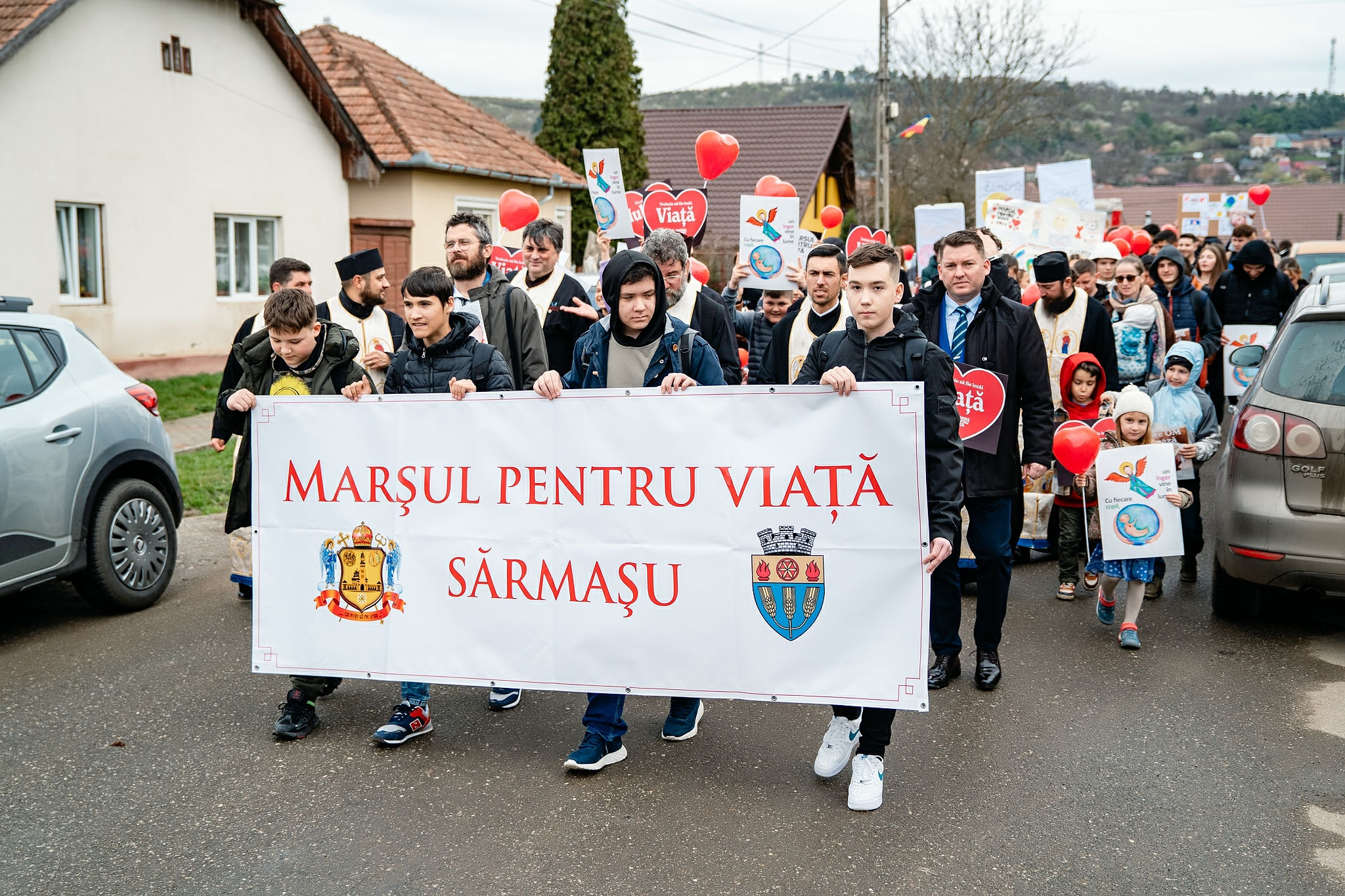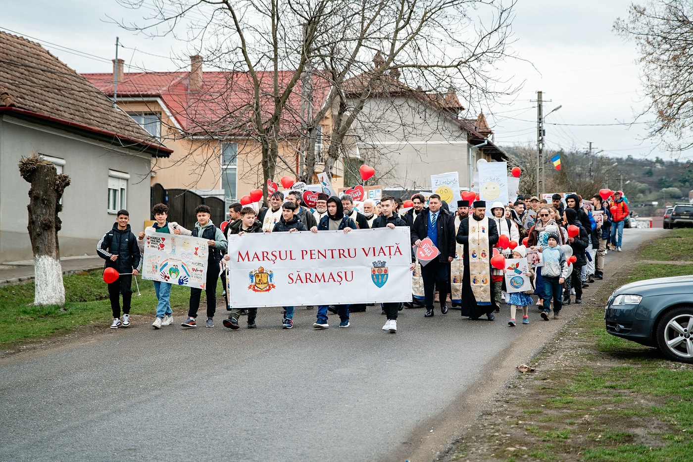 Cu binecuvântarea Înaltpreasfinţitului Părinte Irineu, Arhiepiscop al Alba Iuliei, Parohia Ortodoxă Sărmașu, păstorită de părintele Daniel Camară, în colaborare cu Primăria Orașului Sărmașu și cu Liceul Teoretic „Samuil Micu” din localitate, a organizat vineri, 28 martie a.c., Marșul pentru Viață. Acesta s-a desfășurat pe traseul cuprins între biserica „Sfinții Arhangheli Mihail și Gavriil” și Parcul Central – Casa de Cultură. La eveniment au participat reprezentanți ai autorităților locale, părintele paroh Daniel Camară, clerici din cadrul Centrului Catehetic Sărmașu (respectiv preoții parohiilor Miheșu de Câmpie, Răzoare, Balda, Vișinelu, Sărmășel Sat, Dâmbu, Tușinu, Sâmpetru, Sărmașu), conducerea Liceului Teoretic „Samuil Micu”, cadre didactice și elevi ai instituției de învățământ preuniversitar. Acestora li s-au alăturat numeroși credincioși dreptslăvitori.