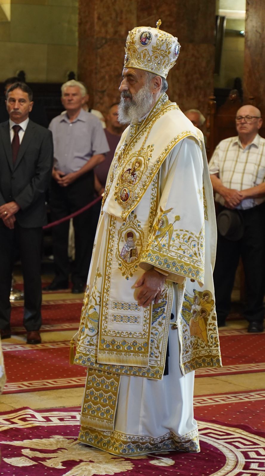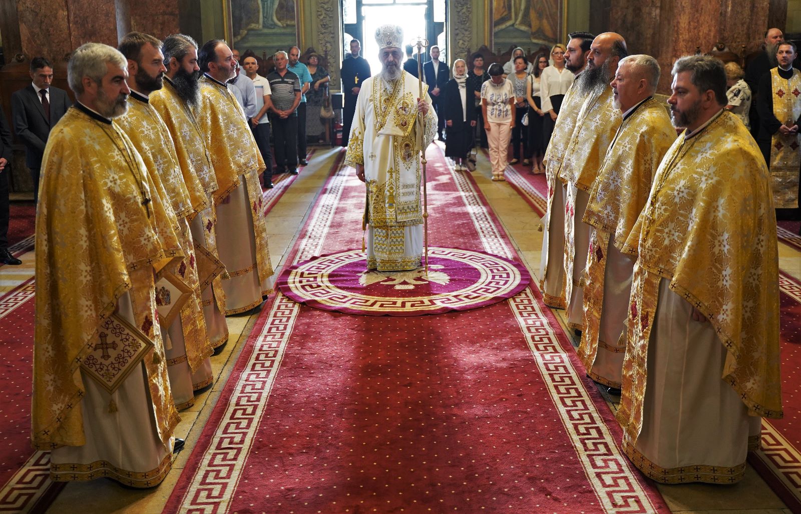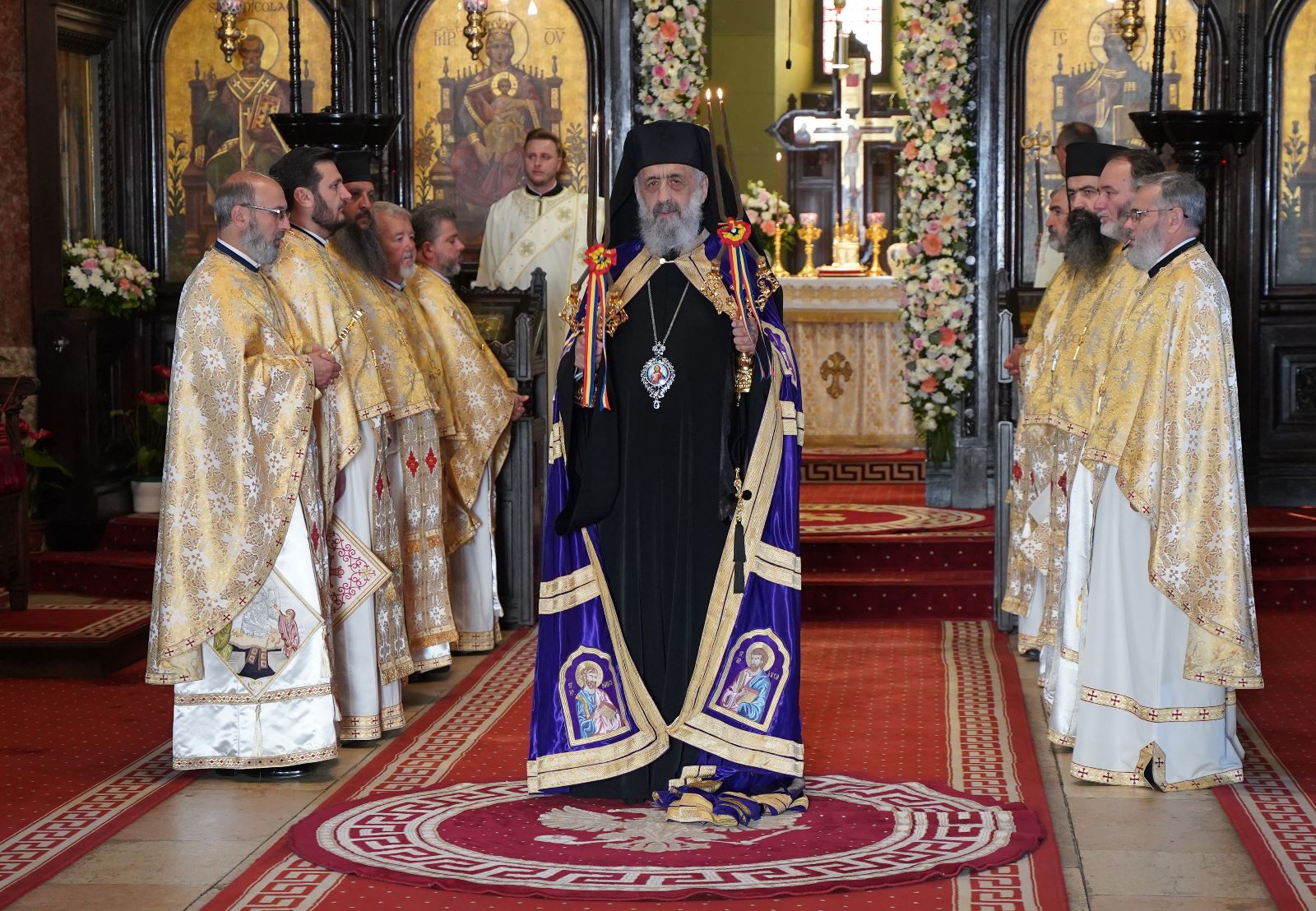 Începând cu ora 9:00, la Catedrala arhiepiscopală din Alba Iulia, Arhipăstorul nostru a celebrat Dumnezeiasca Liturghie, într-un sobor de preoți și diaconi, format din membrii Permanenței Consiliului Eparhial, protopopi, stareți și slujitori ai Catedralei. După citirea Sfintei Evanghelii, Chiriarhul Alba Iuliei a rostit omilia duminicală în care a subliniat importanța rugăciunii în viața creștinului. După Sfânta Liturghie, a urmat slujba de Te-Deum oficiată de un sobor de preoți condus de părintele Eugen Moldovan – consilier administrativ-bisericesc al Eparhiei Alba Iuliei. După acest moment de rugăciune de mulțumire, părintele Petrișor Muntean – inspector eparhial a dat citire mesajului Permanenței Consiliului eparhial transmis cu prilejul acestui popas aniversar din viața Întâistătătorului Eparhiei noastre.