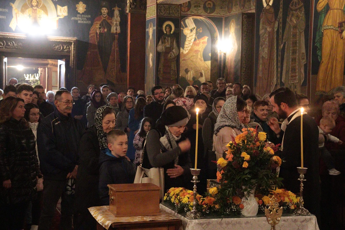 Programul liturgic din aceste zile a fost unul special, ceremoniile religioase reunind numeroși clerici și credincioși din municipiul Aiud și din împrejurimi. Sâmbătă, 26 octombrie, la ceas de seară, au fost aduse cinstitele moaște ale Sfântului Vasile cel Mare, prilej cu care a fost organizată o procesiune în jurul bisericii. În continuare, a fost săvârșită slujba privegherii (Vecernia mare cu Litie și Utrenia), în cadrul căreia ierom. Gheorghe Sas, egumenul Schitului „Sfântul Ioan Evanghelistul” din Găbud, a rostit un bogat cuvânt duhovnicesc. Răspunsurile liturgice au fost oferite de un grup de psalți și studenți teologi, coordonat de părintele Marius Soponaru, preot capelan în cadrul Penitenciarului de Maximă Siguranță Aiud.