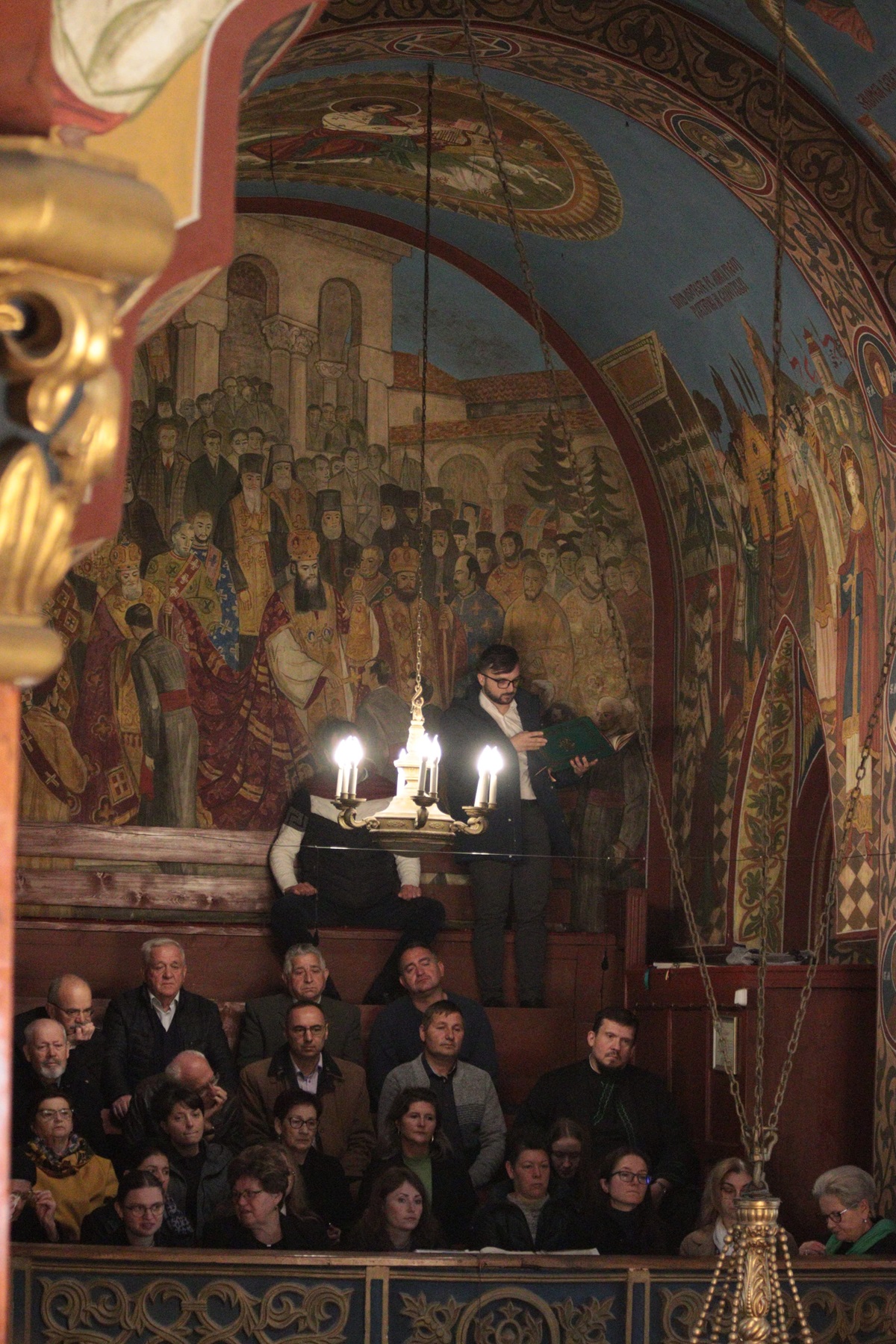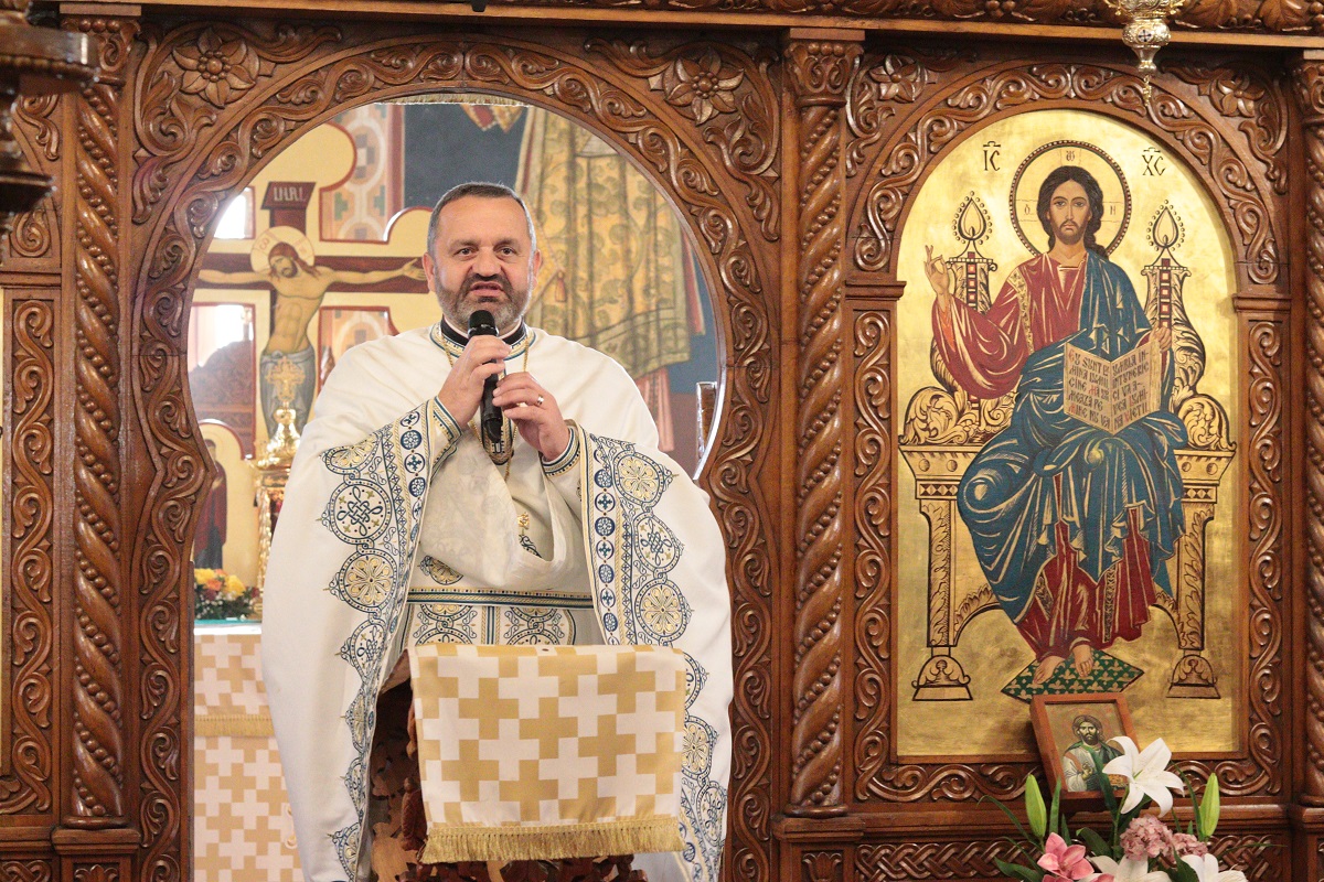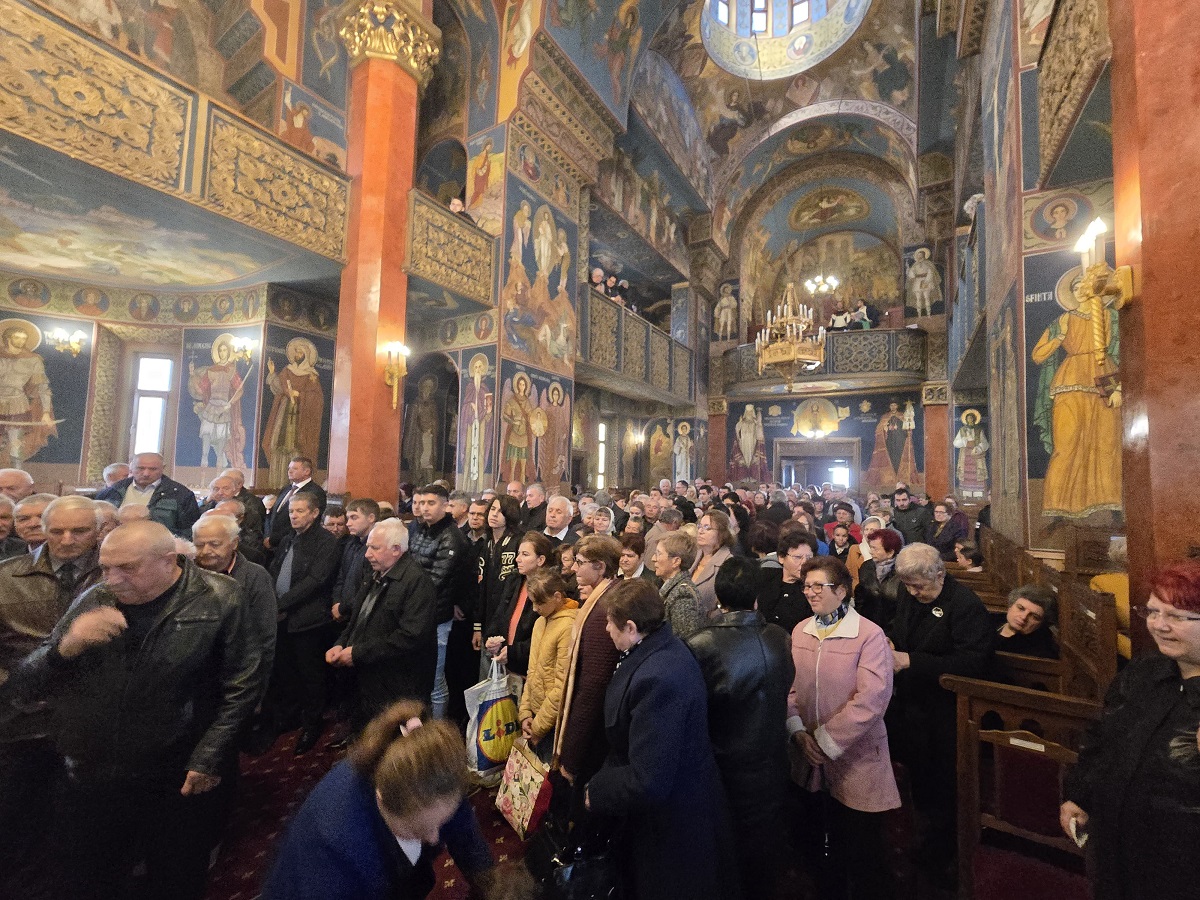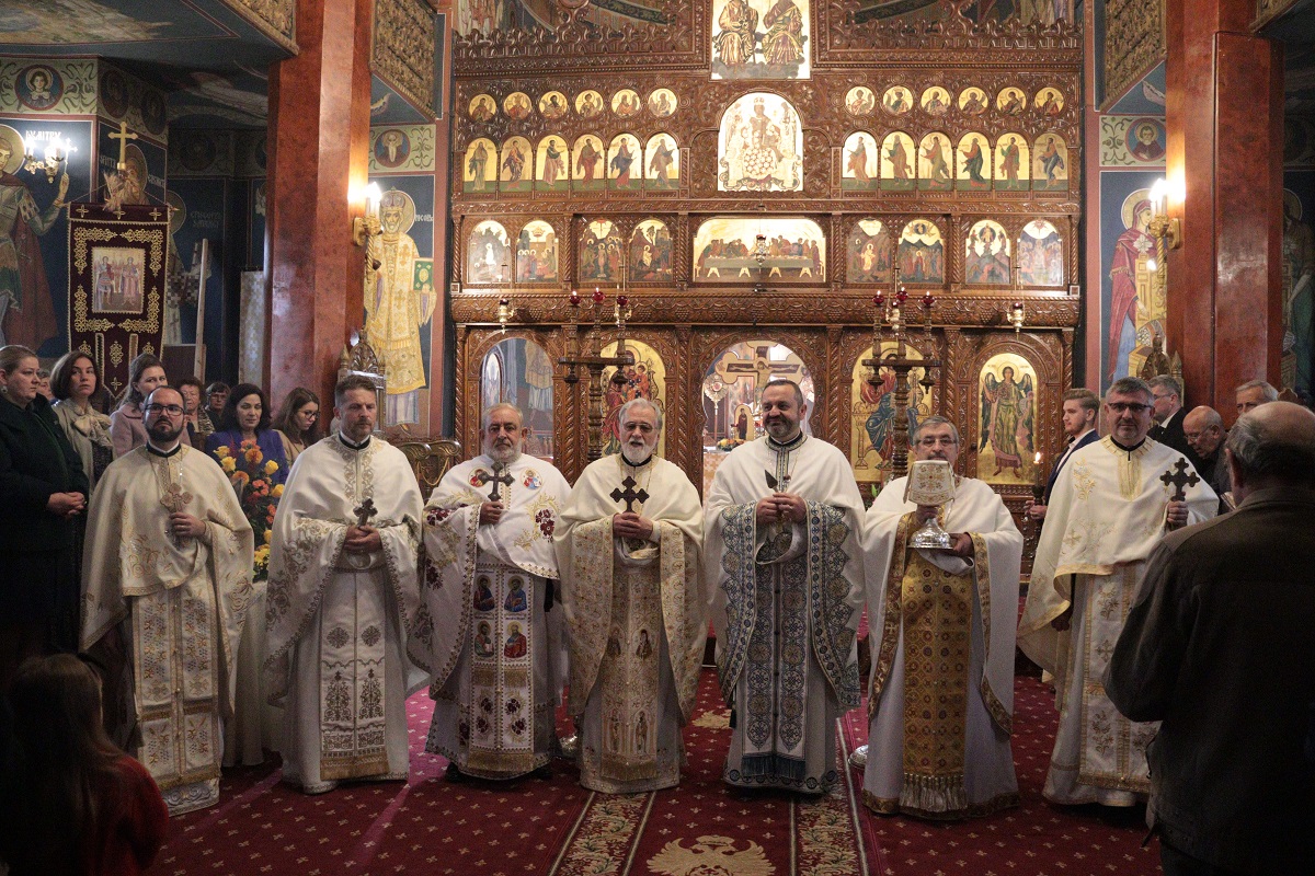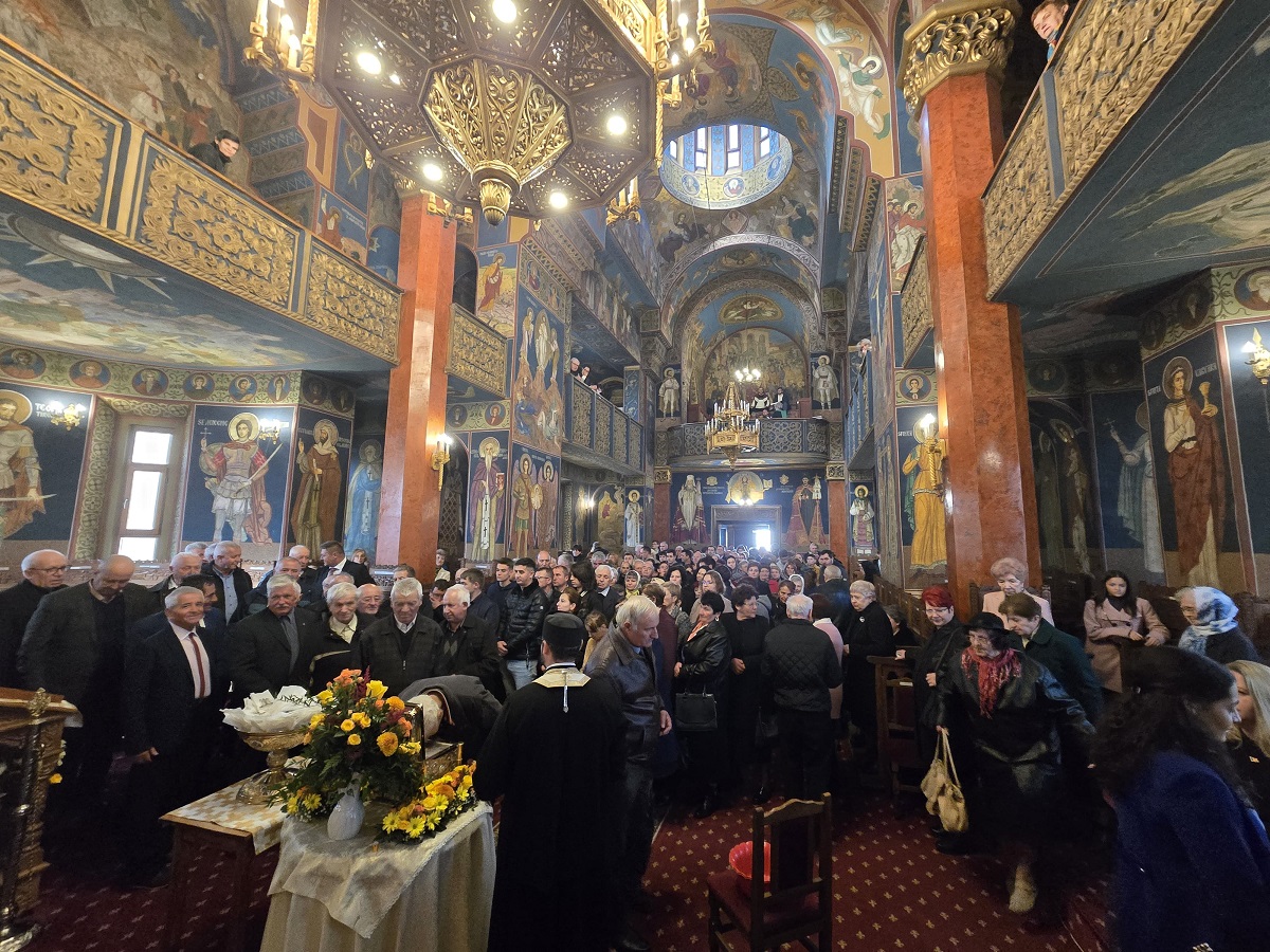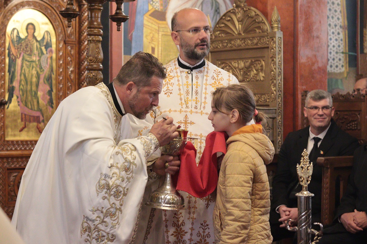 Sărbătoarea comunității parohiei Aiud II a culminat duminică, 27 octombrie 2024, în ziua împlinirii a cinci decenii de la târnosirea bisericii „Sfinții Trei Ierarhi” (27 octombrie 1974). Dumnezeiasca Liturghie a Sfântului Ioan Gură de Aur a fost oficiată de către un numeros sobor de clerici, format din părinți profesori și preoți din parohiile municipiului Aiud, în fruntea căruia s-a aflat părintele profesor Simion Todoran. La finalul Liturghiei, sfinția sa a rostit cuvântul de învățătură, prilej cu care a tâlcuit pericopa evanghelică a duminicii. Alături de cei șapte preoți, a liturghisit părintele arhid. conf. univ. dr. Răzvan Brudiu, titularul catedrei de Misiologie Ortodoxă din cadrul Facultății de Teologie Ortodoxă din Alba Iulia, „fiu” al parohiei Aiud II. Răspunsurile liturgice au fost oferite de Corul bisericii parohiale, coordonat de către doamna prof. Ana Scriban. De asemenea, la slujbă a fost prezent domnul Dragoș Crișan, primarul municipiului Aiud.