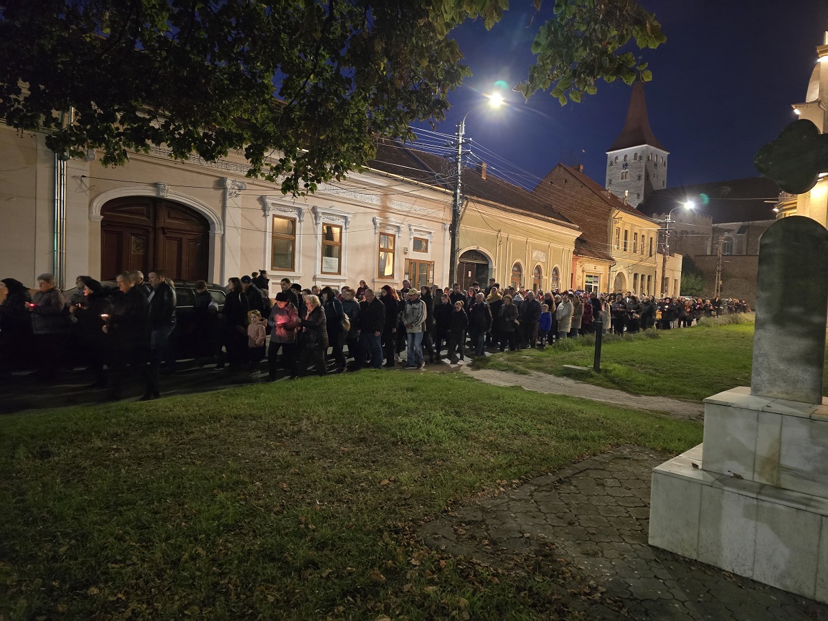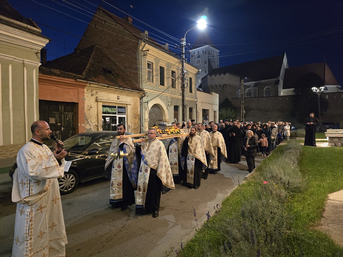 Comunitatea credincioșilor din parohia Aiud II a îmbrăcat haină de sărbătoare și aleasă bucurie duhovnicească, în contextul împlinirii a 50 de ani de la târnosirea bisericii cu hramul „Sfinții Trei Ierarhi” din municipiu. Cu ocazia acestui popas istoric și spiritual de suflet, Parohia Ortodoxă Aiud II și Protopopiatul Ortodox Aiud au organizat, în perioada 26-27 octombrie 2024, o serie de manifestări duhovnicești deosebite. Bucuria sărbătorii a fost sporită de prezența moaștelor Sfântului Vasile cel Mare, la biserica „Sfinții Trei Ierarhi”. Racla cu cinstitul odor a fost adusă de la Mănăstirea „Hristos Pantocrator” din Alba Iulia, cu binecuvântarea Înaltpreasfințitului Părinte Arhiepiscop Irineu.