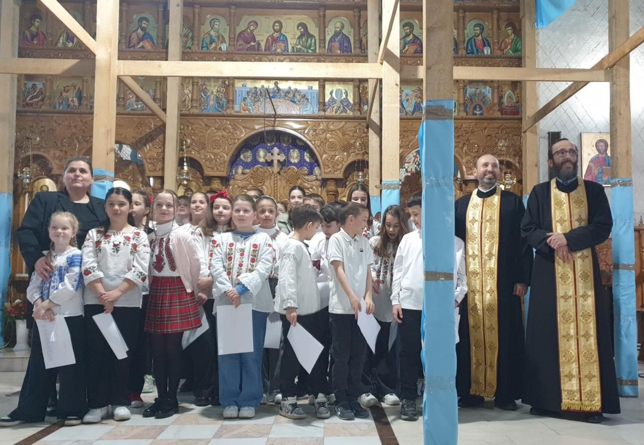 Sub conducerea doamnei prof. Alina Bucur (disciplina Religie), micii școlari din clasele a III-a B și a IV-a A au oferit răspunsurile „Bucură-te, Mireasă, pururea Fecioară!” la Acatistul Bunei Vestiri, oficiat de preoții parohi Ioan-Claudiu Tofan și Mircea Fusaru. Într-o atmosferă de curată bucurie, copiii au continuat cu un colaj de cântec și poezie dedicat Maicii Domnului, ocrotitoarea noastră.
