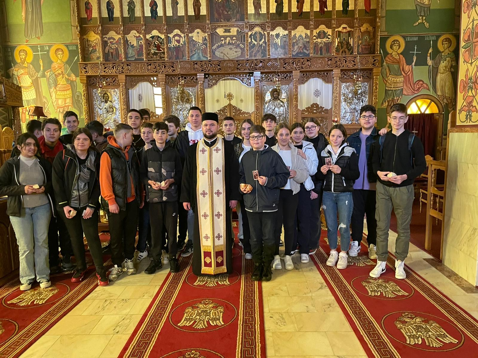 În acord cu lecția intitulată „Biserica, locaș de închinare”, elevii au putut afla numeroase informații legate de specificul locașului de rugăciune. De asemenea, tinerilor le-au fost prezentate și anumite aspecte de ordin practic, definitorii pentru slujirea liturgică. La sfârșitul orei, elevii au fost miruiți și au primit în dar câte o iconiță.