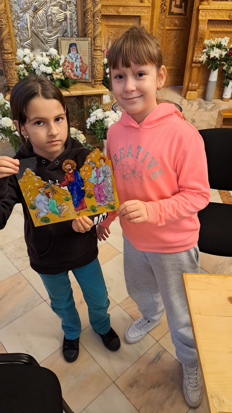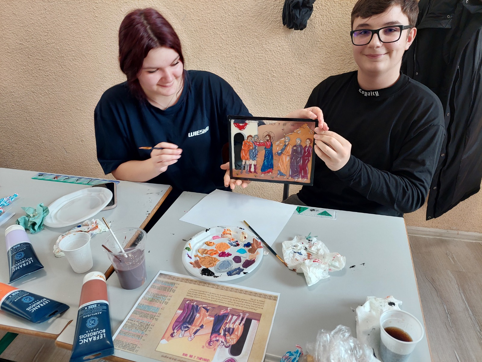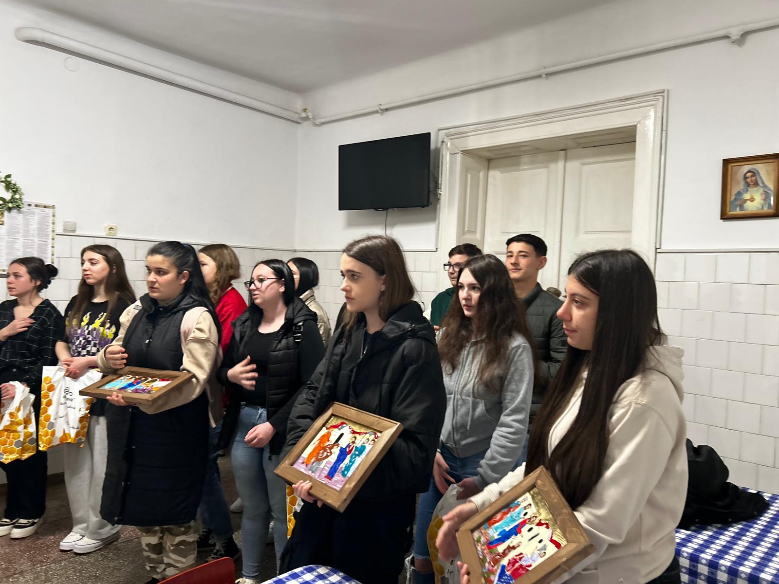 Prin cele trei ateliere de icoane pictate pe sticlă, coordonate cu multă pasiune și implicare de către doamna Ioana Aruști, tinerii noștri au căutat să ofere bolnavilor cercetați de preoții Ioan Rusan și Ioan Nicoară, slujitori ai parohiei Blaj Sfânta-Maria, un dar mai aparte care să-i implice, într-o manieră personală, prin lucrarea mâinilor și a inimilor lor. Sfântul Grigorie Teologul spune: „Dragostea este lucru curat și de Dumnezeu vrednic, iar lucrul împărtășirea către celălalt”.