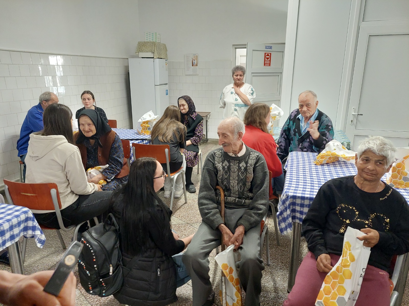 Alte icoane pictate de copii au fost dăruite celor 11 vârstnici de la azilul de bătrâni din Blaj, fiecare dintre ei suferind de anumite neputințe sau boli. Alături de icoane, acești oameni aflați în toamna vieții, profund sensibilizați de prezența oaspeților, au primit și câteva daruri dulci, în special miere de albine. După un moment de rugăciune și cântece religioase, vârstnicii au avut parte și de un timp de dialog cu tinerii, timp în care s-au depănat multe amintiri din viața dânșilor. În sala de mese, unde a avut loc întâlnirea, au fost așezate icoanele dăruite. Atât recunoștința acestora, cât și compasiunea tinerilor, au fost evidente.