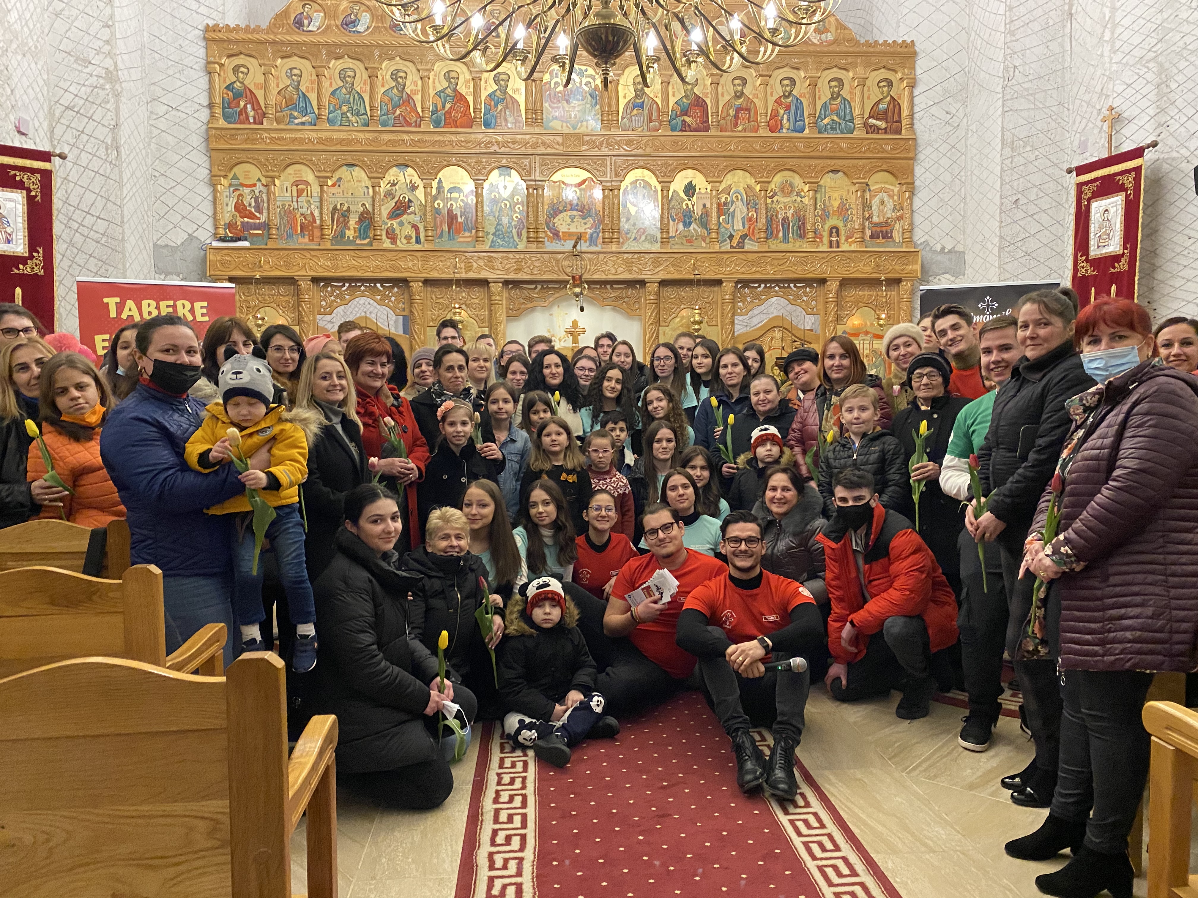 Paraclisul Tinereții s-a bucurat de o prezență numeroasă, peste 100 de participanți, tineri de toate vârstele și în special mame „de toate vârstele”. Seara a început cu slujba Paraclisului Maicii Domnului săvârșită de părintele paroh Radu Țuțui, alături de strana voluntarilor „Emanoil” și cu cooperarea întregii Biserici. La finalul slujbei, am primit un cuvânt de îmbărbătare în aceste vremuri tulburi, după care ne-am îndreptat privirile spre icoana Maicii Domnului, mama noastră spirituală, iar apoi ne-am întors atenția spre cele mai importante ființe din viața noastră, mamele noastre, cărora le-am pus în piepturi mărțișor, inimile noastre. Momentul emoționant prin care ne-am omagiat mamele a fost dublat de gestul inspirat al parohiei gazdă care a oferit câte o floare fiecărei mămici prezente. Întreaga seară s-a încheiat cu o agapă în spirit de comuniune, socializare și prietenie.