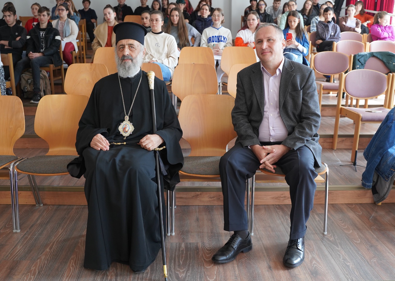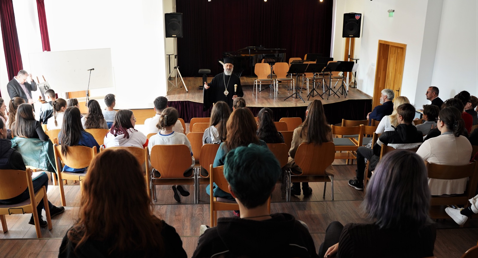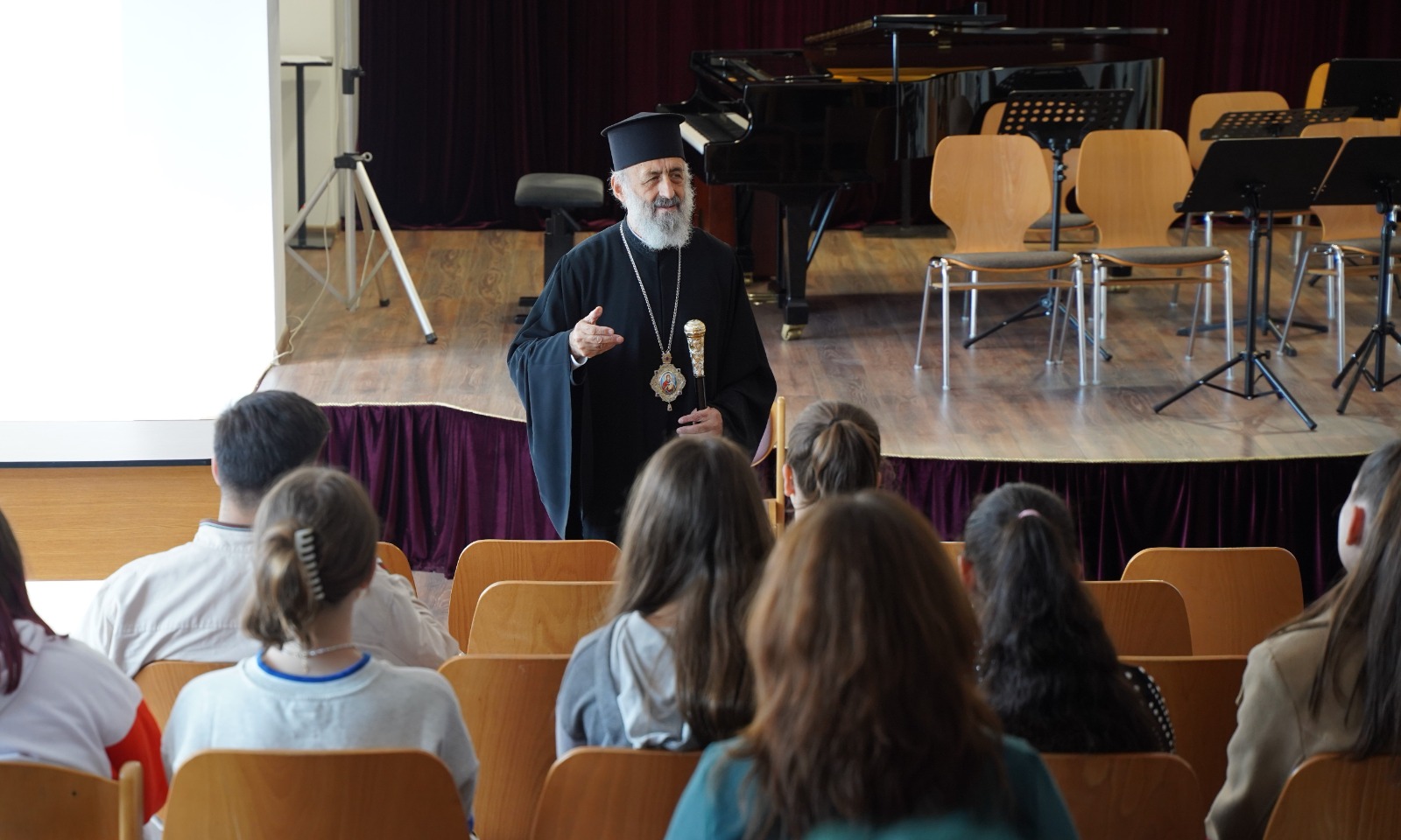 În prima parte a evenimentului, Arhipăstorul nostru a vizitat sala profesorală, prilej cu care le-a adresat cadrelor didactice îndemnuri și cuvinte ziditoare de suflet. Apoi, Chiriarhul Alba Iuliei a poposit în sălile de clasă, în atelierele de artă și în cabinetele de muzică instrumentală, întâlnindu-se astfel cu elevii prezenți la orele de curs. Apoi, Înaltpreasfinția Sa a asistat la un scurt moment artistic susținut cu măiestrie de către elevii secției de muzică. De asemenea, în semn de aleasă considerație, Ierarhul nostru a primit din partea elevilor un tablou reprezentând o pictură cu un vas antic grecesc.