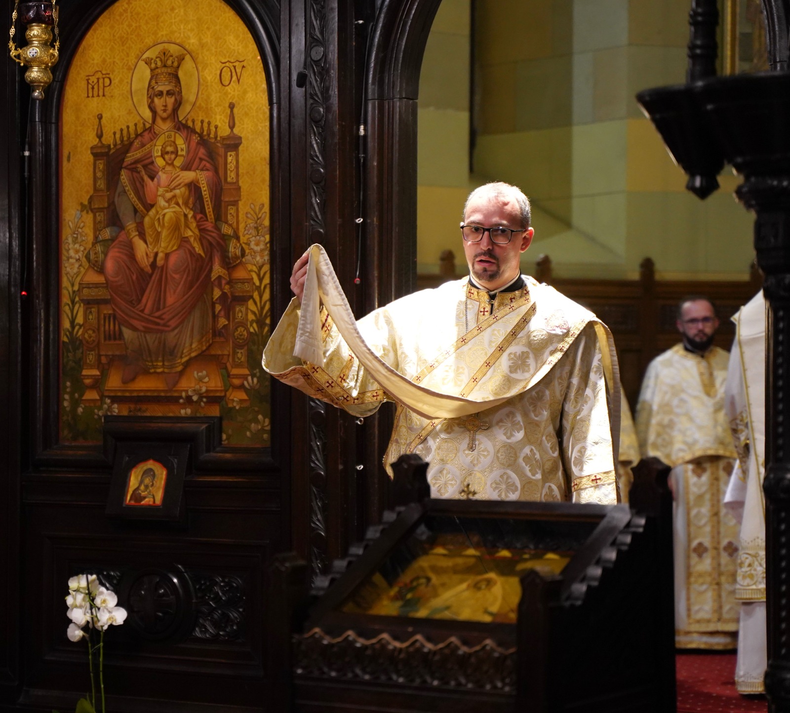 În Duminica a XXVIII-a după Pogorârea Sfântului Duh, numită și a Sfinților Strămoși după trup ai Domnului, când este rânduit să fie citită pericopa evanghelică ce prezintă pilda celor poftiți la cină, Înaltpreasfințitul Părinte Irineu, Arhiepiscop al Alba Iuliei, a poposit la Catedrala Reîntregirii din vechea Cetate a Bălgradului. Arhipăstorul nostru, înconjurat de un numeros sobor de preoți și diaconi, a oficiat Dumnezeiasca Liturghie a Sfântului Ioan Gură de Aur și a rostit cuvântul de învățătură, în prezența a numeroși credincioși din orașul Marii Uniri. Răspunsurile liturgice au fost oferite de către Corala „Sfânta Treime” a Catedralei arhiepiscopale, dirijată de către tânărul Antonio Rotar.