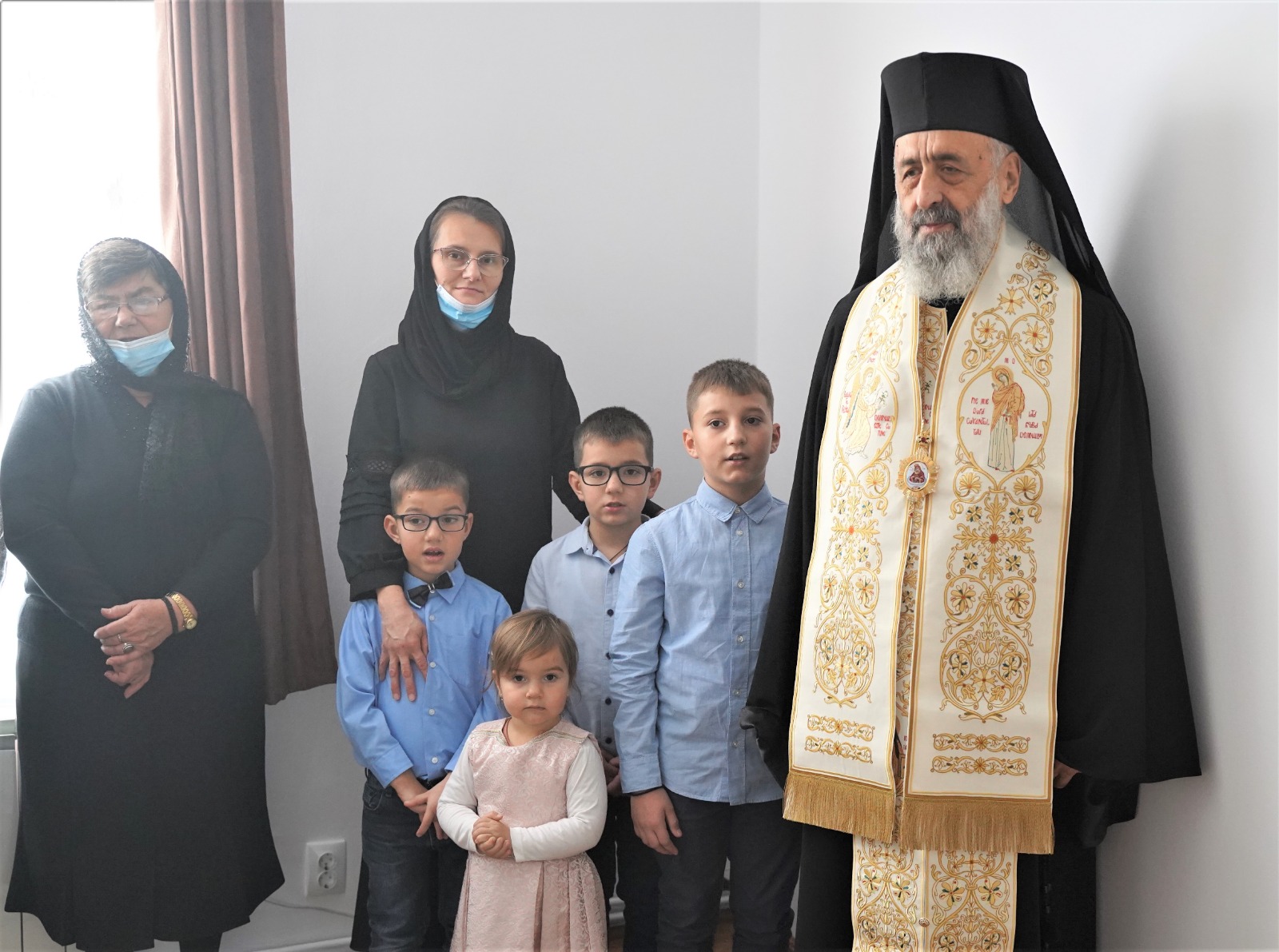În cuvântul rostit cu acest prilej, Ierarhul nostru a spus: „Pandemia care s-a abătut peste lume ca un flagel oribil a adus cu ea suferinţă, depresie, boală şi moarte. În această perioadă neagră din istoria umanităţii, multe fiinţe dragi au fost smulse brutal dintre noi. Aşa s-a întâmplat cu tânărul şi vrednicul preot Bogdan, încât a lăsat în urma sa, în mare durere, pe scumpa soţie Anca şi pe cei patru copilaşi dulci Matei, Luca, Filip şi Anisia. În pofida crizei medicale şi economice, cler şi popor credincios din Eparhia noastră şi din alte părţi au dat dovadă de solidaritate şi iubire milostivă. Toţi aceştia au înţeles de la Sfântul Apostol Iacob că „religia (cucernicia) curată înaintea lui Dumnezeu este să cercetăm pe orfani şi pe văduve în necazurile lor” (Ic. 1, 27). Adunându-se fonduri băneşti consistente, am reuşit să cumpărăm această casă frumoasă, în care mama văduvă şi puişorii ei orfani vor avea adăpost şi confortul necesar pentru a trăi o viaţă decentă”.