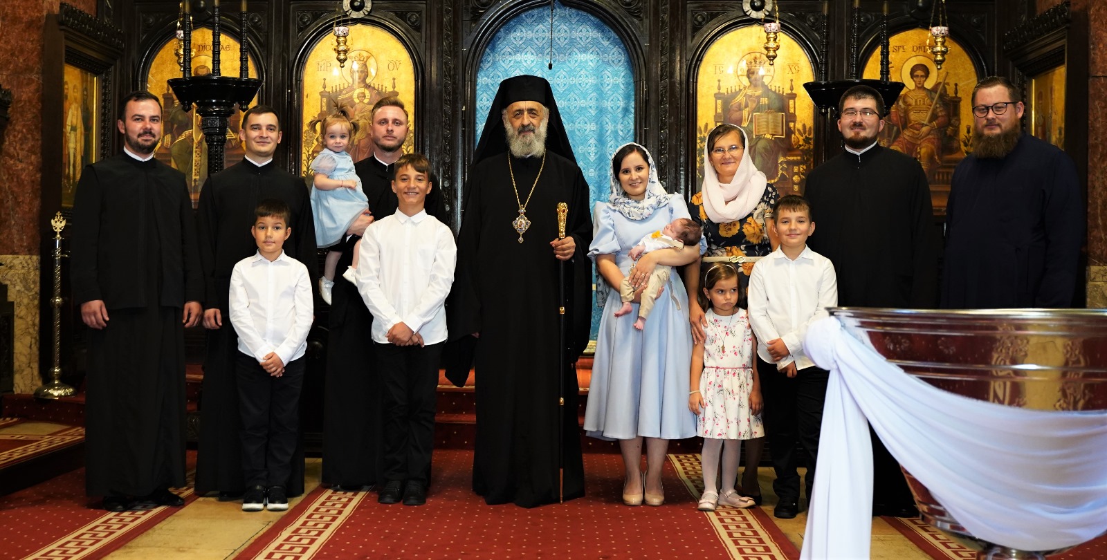 În data de 22 august a.c., Înaltpreasfințitul Părinte Irineu a fost prezent la Catedrala Reîntregirii. Cu acest prilej, Ierarhul nostru a oficiat Taina Sfântului Botez pentru pruncul Nicolae-Serafim, fiul părintelui diacon Bogdan Stroia.