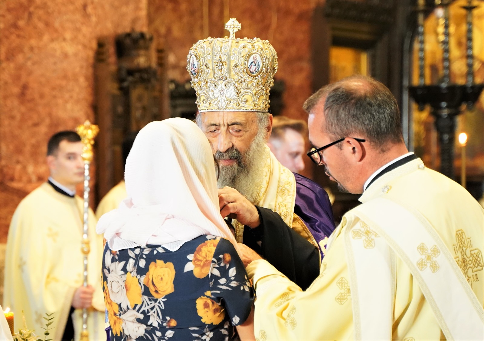 Marți, 22 august 2023, Înaltpreasfințitul Părinte Arhiepiscop Irineu a fost prezent la Catedrala Reîntregirii din Alba Iulia. Începând cu ora 12.00, Întâistătătorul Eparhiei noastre, înconjurat de un sobor de clerici, a oficiat Taina Sfântului Botez pentru pruncul Nicolae-Serafim, fiul părintelui diacon Bogdan Stroia, slujitor al Catedralei arhiepiscopale din orașul Marii Uniri. La final, Chiriarhul Alba Iuliei a rostit un cuvânt duhovnicesc, după care i-a oferit pruncului nou-botezat o icoană cu Mântuitorul Iisus Hristos.