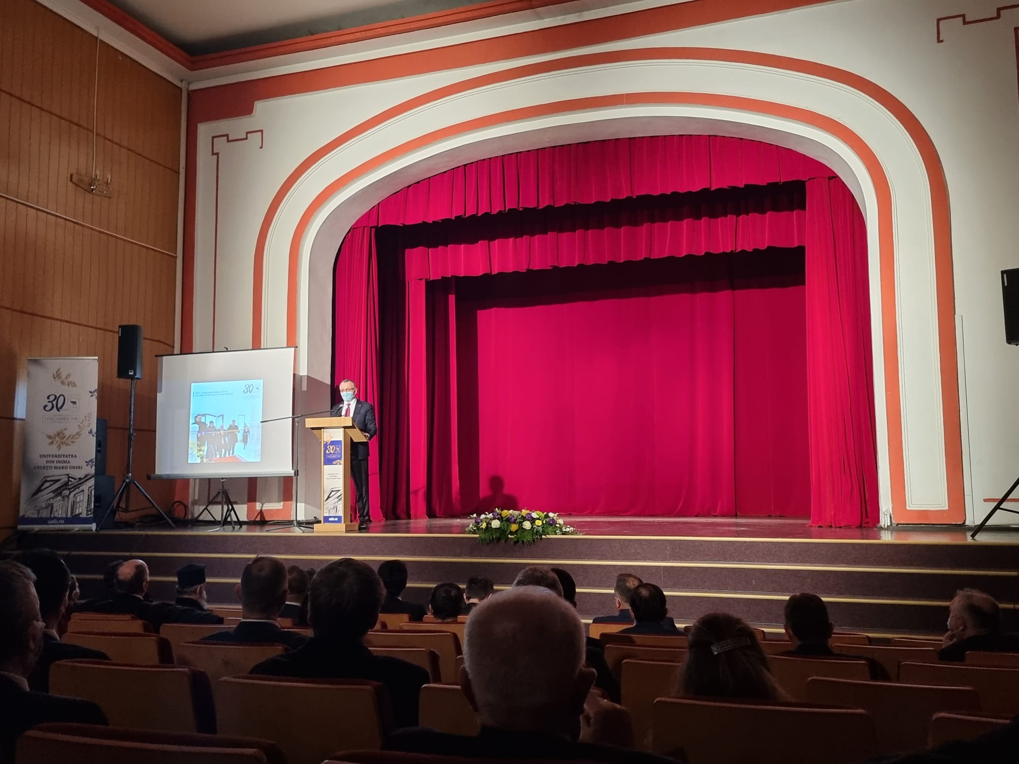 Adresându-se participanților la acest eveniment deosebit, Arhipăstorul nostru a spus: „La acest popas aniversar, îmi exprim aprecierea mea sinceră față de Universitatea «1 Decembrie 1918» din Alba Iulia, o nobilă instituție academică. O numesc nobilă fiindcă, pentru ea, procesul educativ constă în integrarea optimală într-o ordine existentă în societate, în istorie. Dacă, timp de trei decenii, Universitatea este atât de roditoare și prosperă, aceasta se datorează, desigur, distinșilor profesori universitari, care dau dovadă de competență, dar și de exemplu personal, acesta fiind singurul mod de a-i influența pe ceilalți, după cum spunea oarecând filosoful german Albert Schweitzer. Eu aș spune că, pe lângă bagajul de cunoștințe și exemplaritatea comportamentală, în școala românească este de mare folos credința în Dumnezeu. Fără aceasta, noi nu îi putem pregăti realmente pe tineri pentru viață, drept pentru care și Patriarhul Unirii, Miron Cristea, spunea: «Adevărata învățătură nu poate fi decât aceea care se întemeiază pe credința în Dumnezeu». Fiindcă suntem la Alba Iulia, în preajma zilei Unirii, e bine să ne aducem aminte că, în urmă cu două milenii, pe când ne formam ca popor, am primit creștinismul, adică Hristos, Iisus din Nazaret și Fiul lui Dumnezeu din Cer, a pășit tainic în spațiul nostru autohton, prin cuvântul Evangheliei și prin harul Sfântului Duh. De aceea, astăzi, când societatea noastră secularizată proliferează o cultură a nonvalorilor – vorbesc la modul general –, uneori chiar o cultură a morții, este potrivit să Îl așezăm pe Hristos, Logosul etern, Împăratul lumii salvate, la prezidiul vieții noastre și al devenirii noastre. Numai El ne descoperă valoarea vieții și sensul adevărat al omului. Numai El ne conduce spre realizarea celor mai frumoase și legitime aspirații. În Hristos sunt ascunse toate comorile înțelepciunii și ale cunoașterii, cum inspirat scria oarecând marele Apostol Pavel. În încheiere, Îl rog pe Bunul Dumnezeu să binecuvânteze universitatea noastră, pentru ca ea, în continuare, să înflorească și să propășească sub aripile de aur ale providenței Sale”.