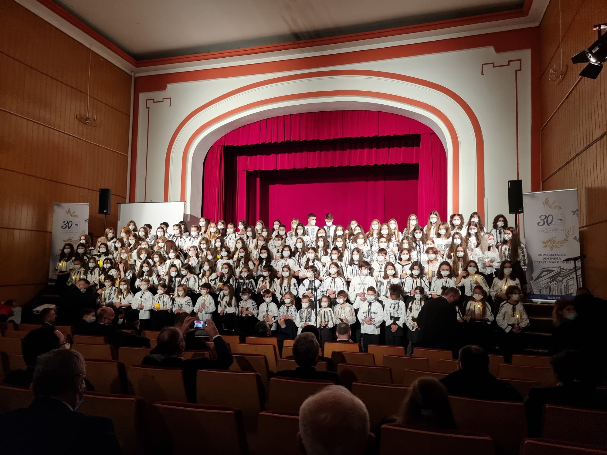 Deschisă printr-un concert aniversar al Orchestrei de cameră a județului Alba din cadrul centrului de cultură „Augustin Bena”, festivitatea aniversară a fost încheiată de un concert al Corului de copii „Theotokos” din Alba Iulia, coordonat de părintele Călin Bulac. Evenimentul a fost organizat cu un număr restrâns de invitați, fiind transmis live pe pagina de Facebook a instituției de învățământ.