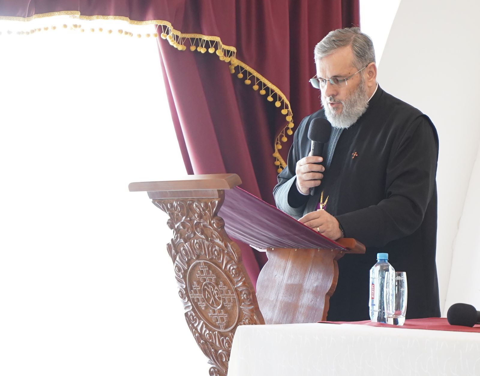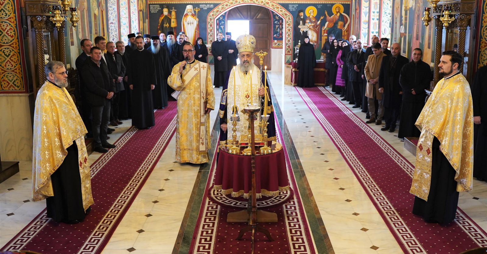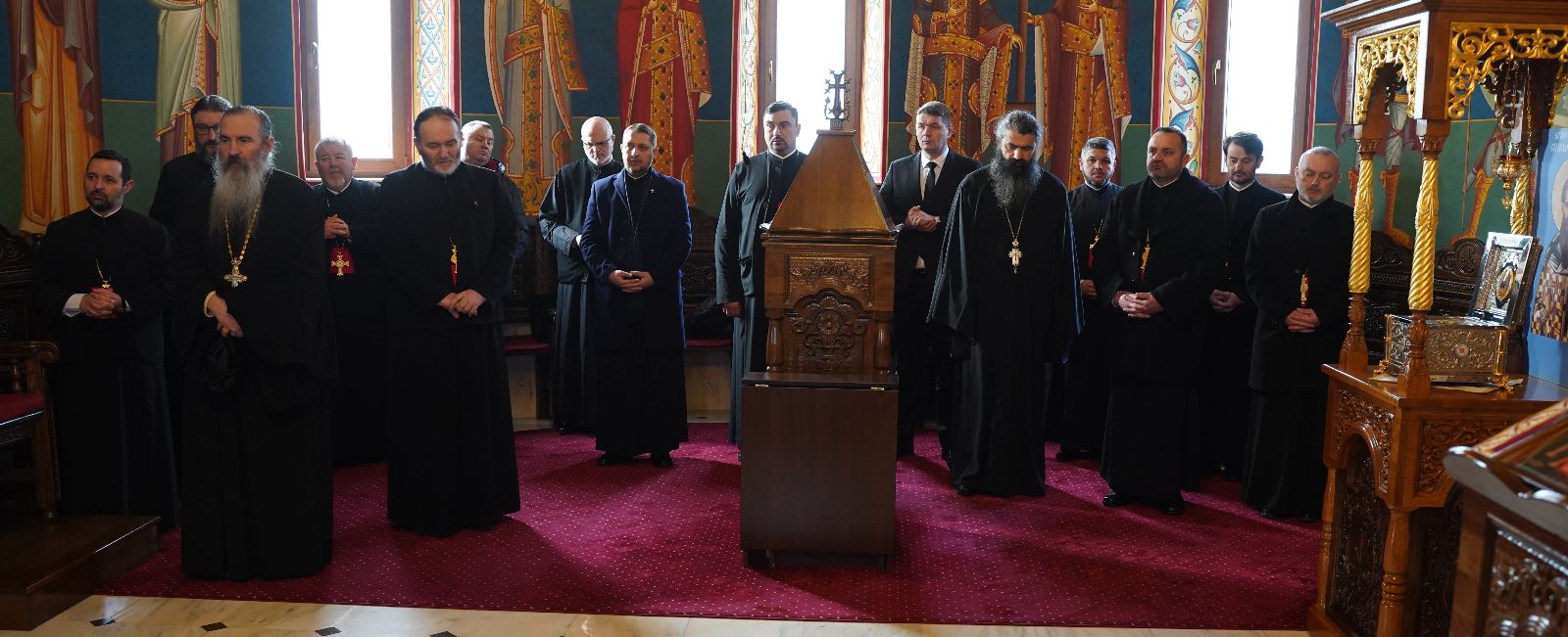 În continuare, de la ora 10.30, în biserica „Sfântul Mare Mucenic Mina” din incinta Mănăstirii „Hristos Pantocrator”, Înaltpreasfințitul Părinte Arhiepiscop Irineu a oficiat slujba de Te-Deum, în semn de mulțumire adusă lui Dumnezeu pentru binefacerile ce au fost revărsate asupra clericilor și credincioșilor din cuprinsul Eparhiei Alba Iuliei pe parcursul anului trecut. După acest moment solemn de rugăciune, Întâistătătorul Eparhiei noastre, în calitate de președinte al Adunării eparhiale, a adresat cuvântul de bun venit membrilor acestui organism eclesial deliberativ, prilej cu care a subliniat conlucrarea dintre clerici și mireni în sânul Bisericii.