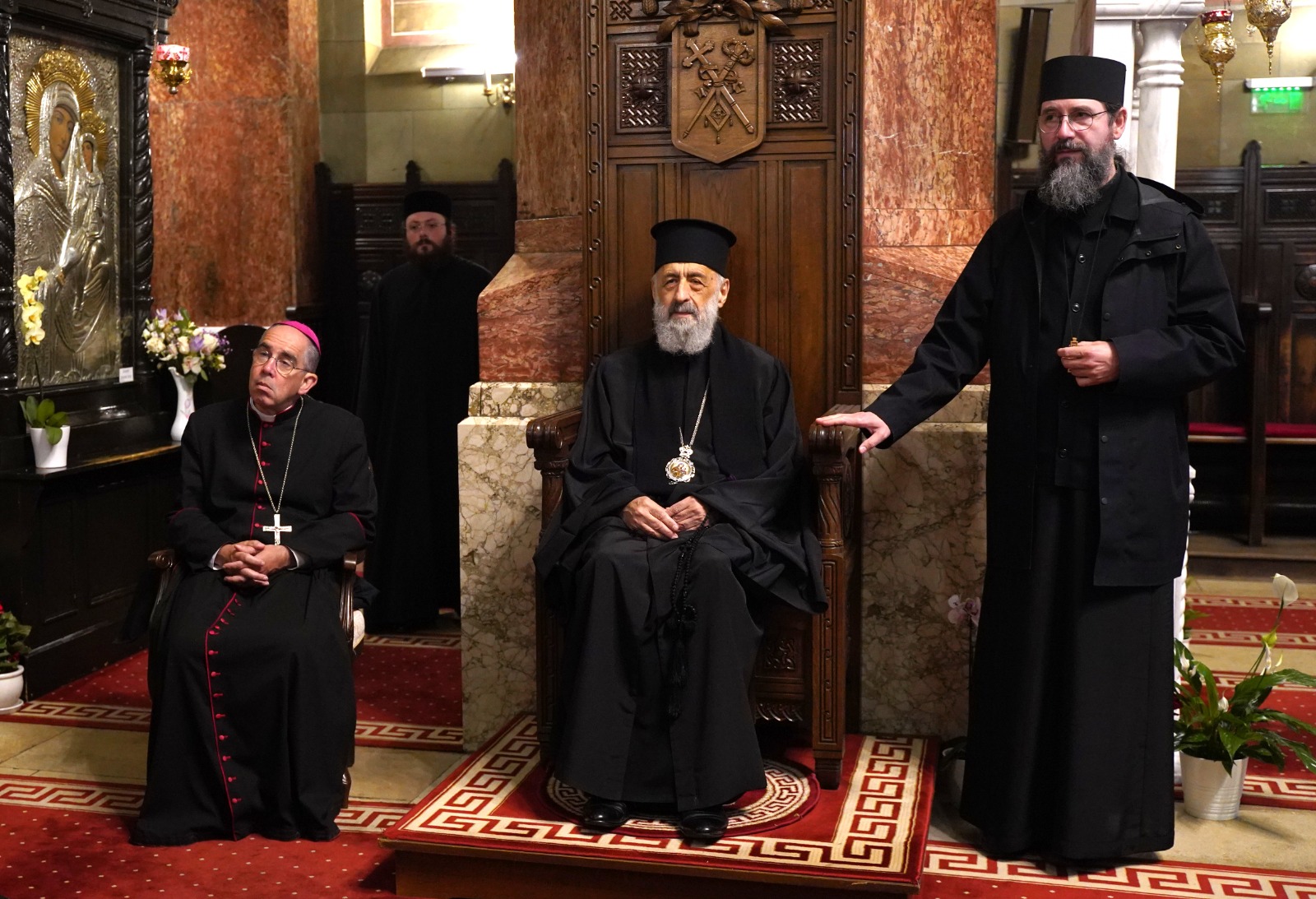 Vineri, 30 mai 2025, Înaltpreasfințitul Părinte Arhiepiscop Irineu a fost prezent la Catedrala Reîntregirii din Cetatea Marii Uniri. Începând cu ora 10.00, Arhipăstorul Alba Iuliei a primit vizita unui grup de pelerini din Franța, care efectuează în aceste zile un itinerariu ecumenic și duhovnicesc pe teritoriul României. În fruntea grupului de credincioși s-a aflat Monseniorul Matthieu Marie Jean Rougé, Episcop Romano-Catolic de Nanterre (Franța). De asemenea, din rândul pelerinilor au făcut parte părintele Daniel Săvan și doi credincioși din Mitropolia Ortodoxă Română a Europei Occidentale și Meridionale.