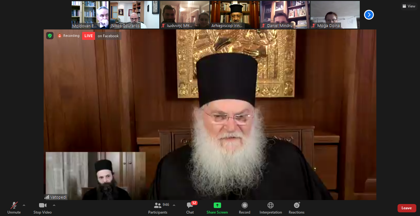 În cadrul întâlnirii online a fost prezent Înaltpreasfințitul Părinte Arhiepiscop Irineu, alăturându-se astfel miilor de credincioși din țară și din străinătate care au luat parte la eveniment. Înaltpreasfinția Sa a adresat în deschiderea sesiunii un cuvânt de binecuvântare, îndemnându-i pe toți să se bucure de povețele și îndrumările Părintelui Arhimandrit Efrem Vatopedinul. De asemenea, Starețul Mănăstirii Vatoped și-a exprimat bucuria deosebită prilejuită de prezența în cadrul sesiunii online a Părintelui Arhiepiscop Irineu, mulțumindu-i pentru frumosul cuvânt rostit în deschiderea evenimentului.