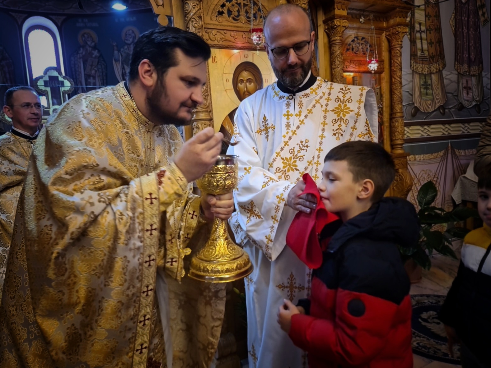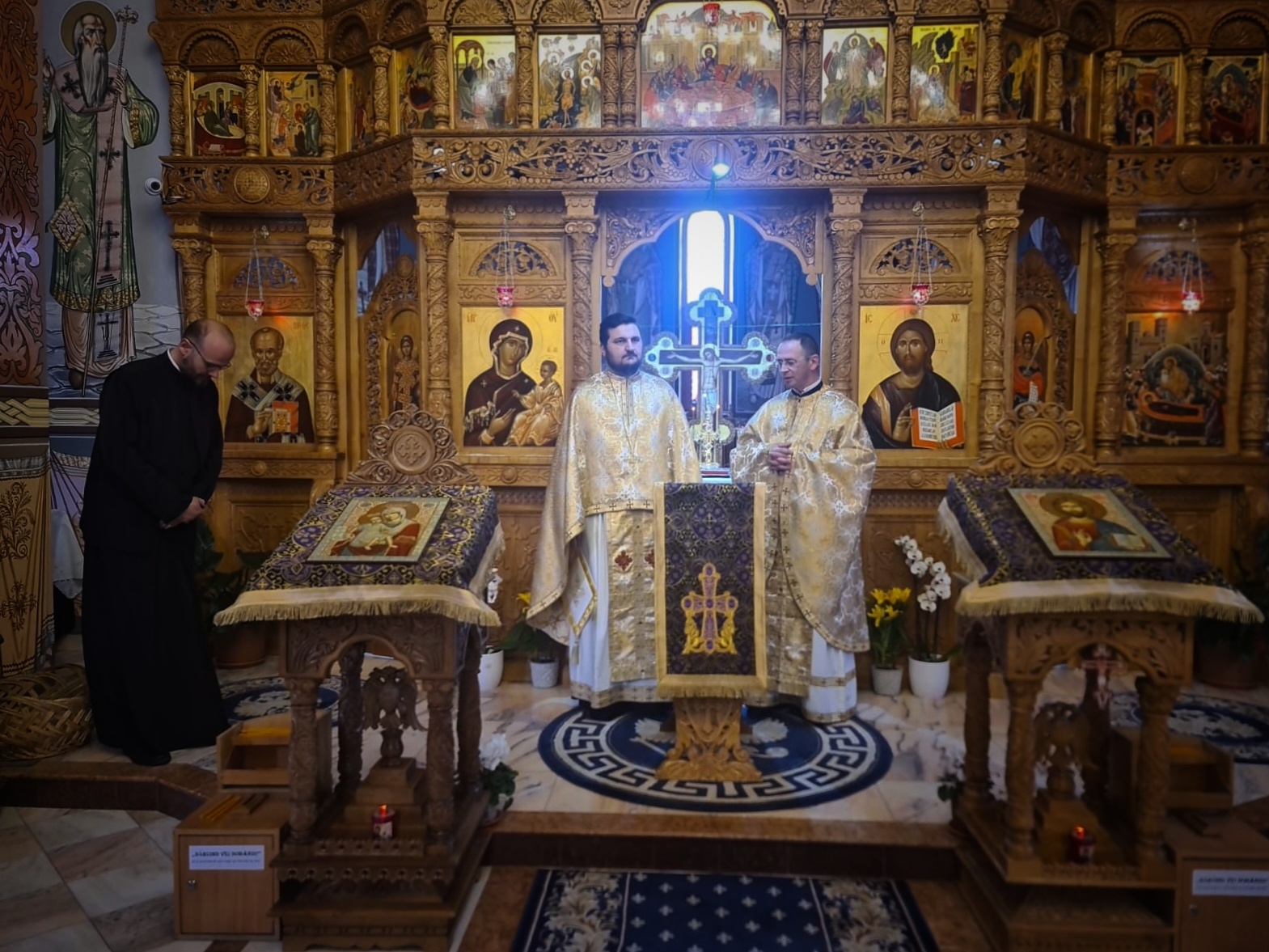 Începând cu ora 10.00, la biserica „Adormirea Maicii Domnului”, Dumnezeiasca Liturghie a Sfântului Vasile cel Mare a fost oficiată de către un sobor de clerici din care au făcut parte pr. lect. univ. dr. Oliviu Botoi, consilier cultural în cadrul Eparhiei Alba Iuliei și titularul catedrei de Teologie morală, arhid. lect. univ. dr. Răzvan Brudiu, titularul catedrei de Misiologie Ortodoxă, și preoții parohi Ioan Rusan și Ioan Nicoară. De asemenea, răspunsurile liturgice au fost oferite de către tinerii studenți teologi.
