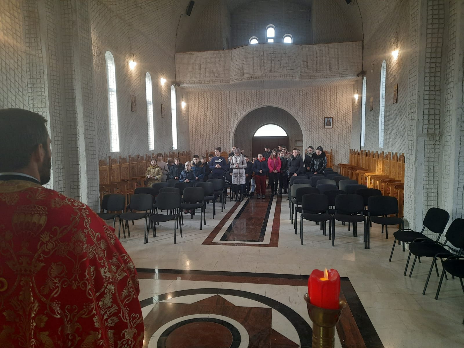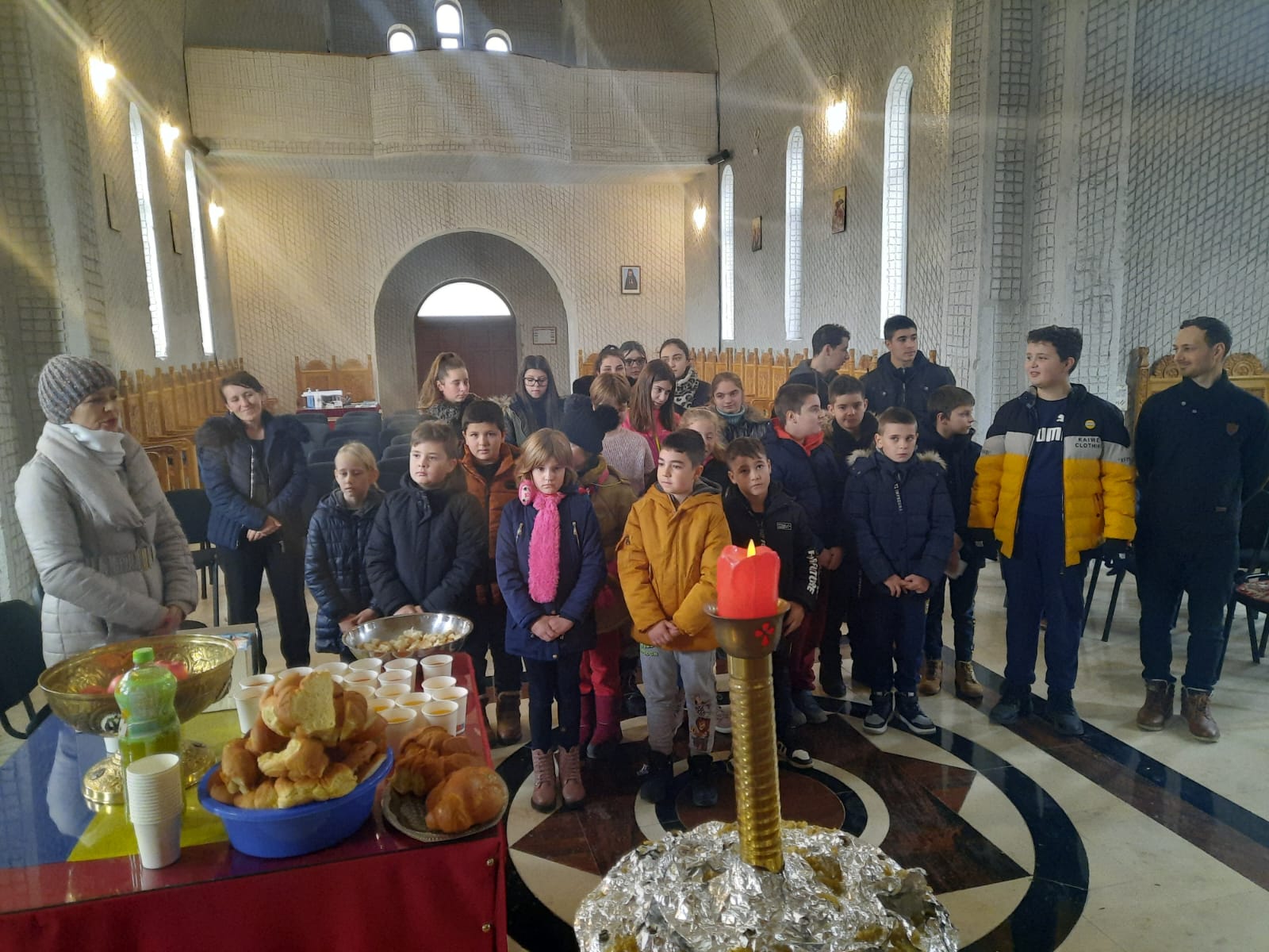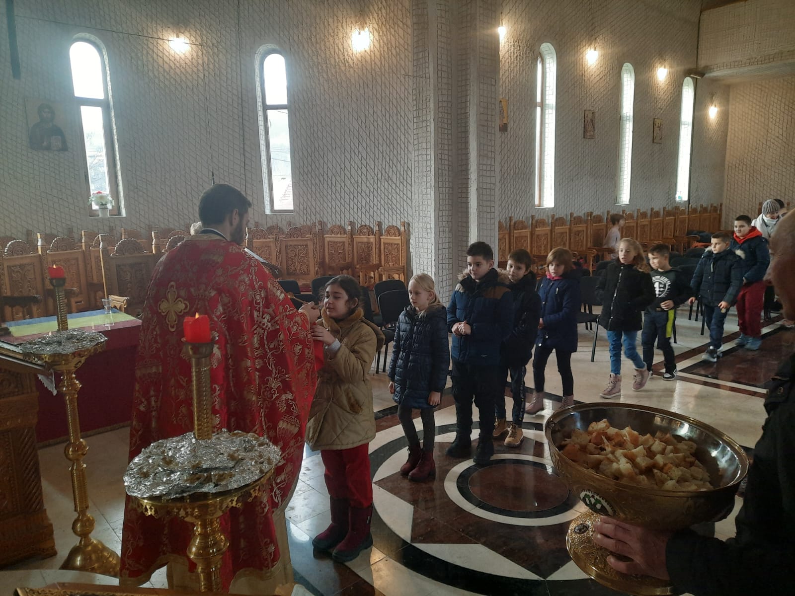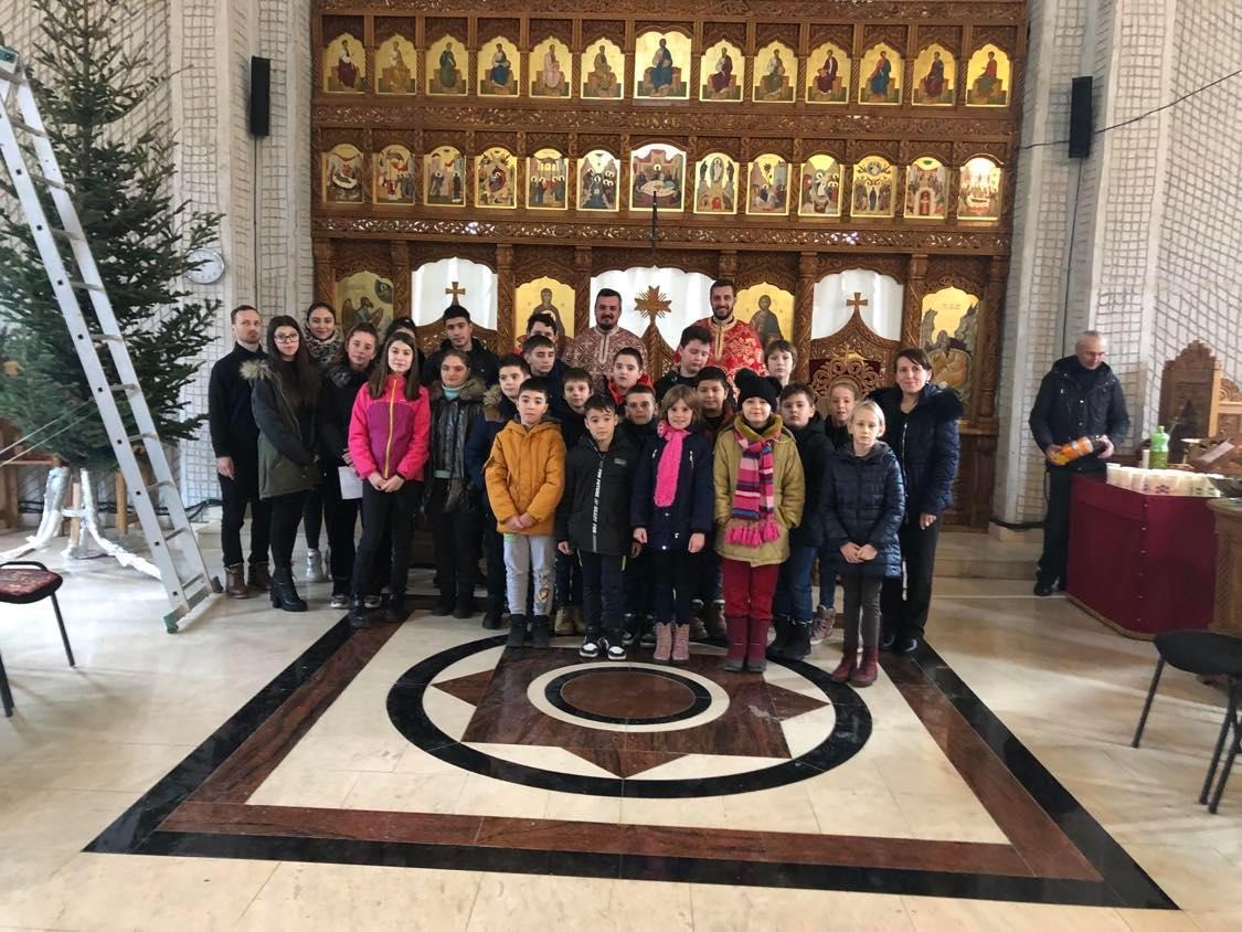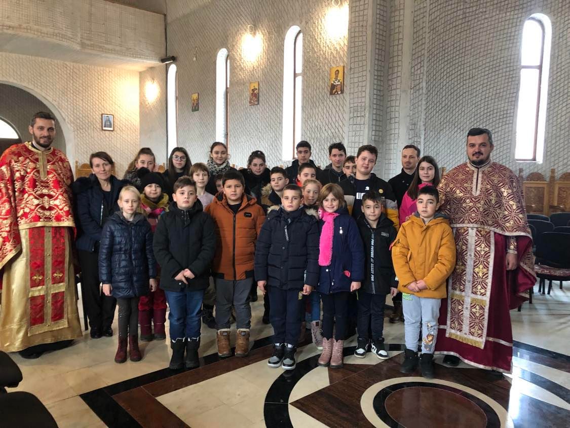 Pe această cale, cei 25 de tineri învățăcei au luat parte la Taina Sfintei Spovedanii, după care au primit Preasfântul Trup și Sânge al Mântuitorului Iisus Hristos. La final, elevii au interpretat mai multe colinde tradiționale specifice zonei din care provin, vestind Nașterea Mântuitorului. Apoi, fiecare elev a primit câte un mic dar din partea parohiei. După Dumnezeiasca Liturghie, copiii au participat la acțiunea de împodobire a bradului de Crăciun, așezat în absida nordică a locașului de închinare. Tinerii elevi au fost însoțiți la biserică de către prof. Răzvan Fugaciu (Religie), prof. Felicia Mocanu (Limba și literatura română) și înv. Maria Șeulean.