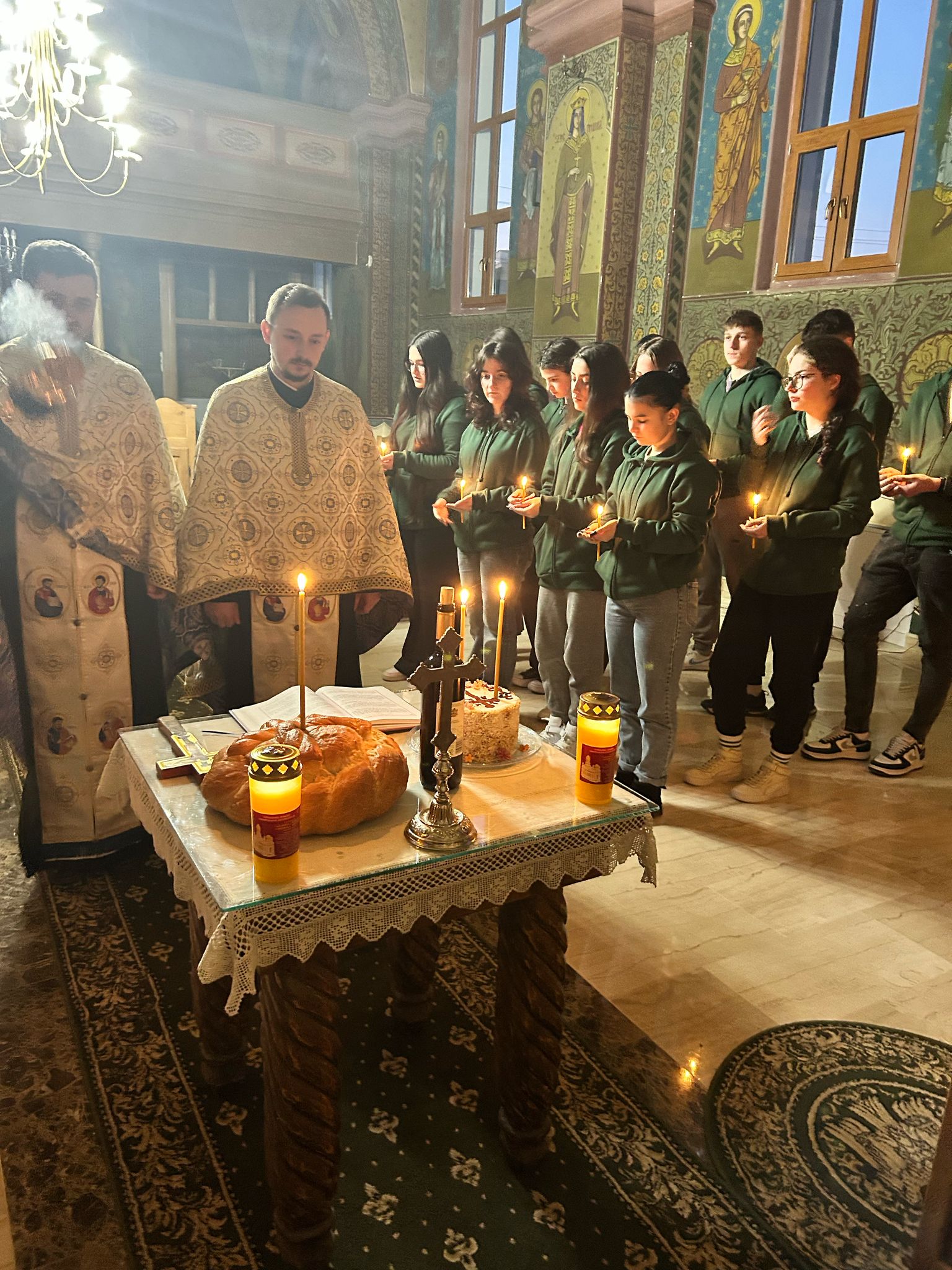 După pregătirea colivei, tinerii au participat la slujba parastasului, oficiată împreună cu părintele Raul Pop, profesor la Școala Gimnazială din localitate (disciplina Religie ortodoxă), în cadrul căreia au fost pomeniți cei cinci patriarhi ai României trecuți în veșnicie: Miron Cristea, Nicodim Munteanu, Justinian Marina, Iustin Moisescu, Teoctist Arăpașu. Invitatul nostru a susținut mai apoi cateheza cu titlul „Patriarhii Bisericii Ortodoxe Române – călăuze ale neamului”, în care a vorbit despre modul de organizare a Bisericii, contextul păstoririi fiecărui patriarh și misiunea neobosită pe care acești vrednici slujitori au împlinit-o în slujba neamului.