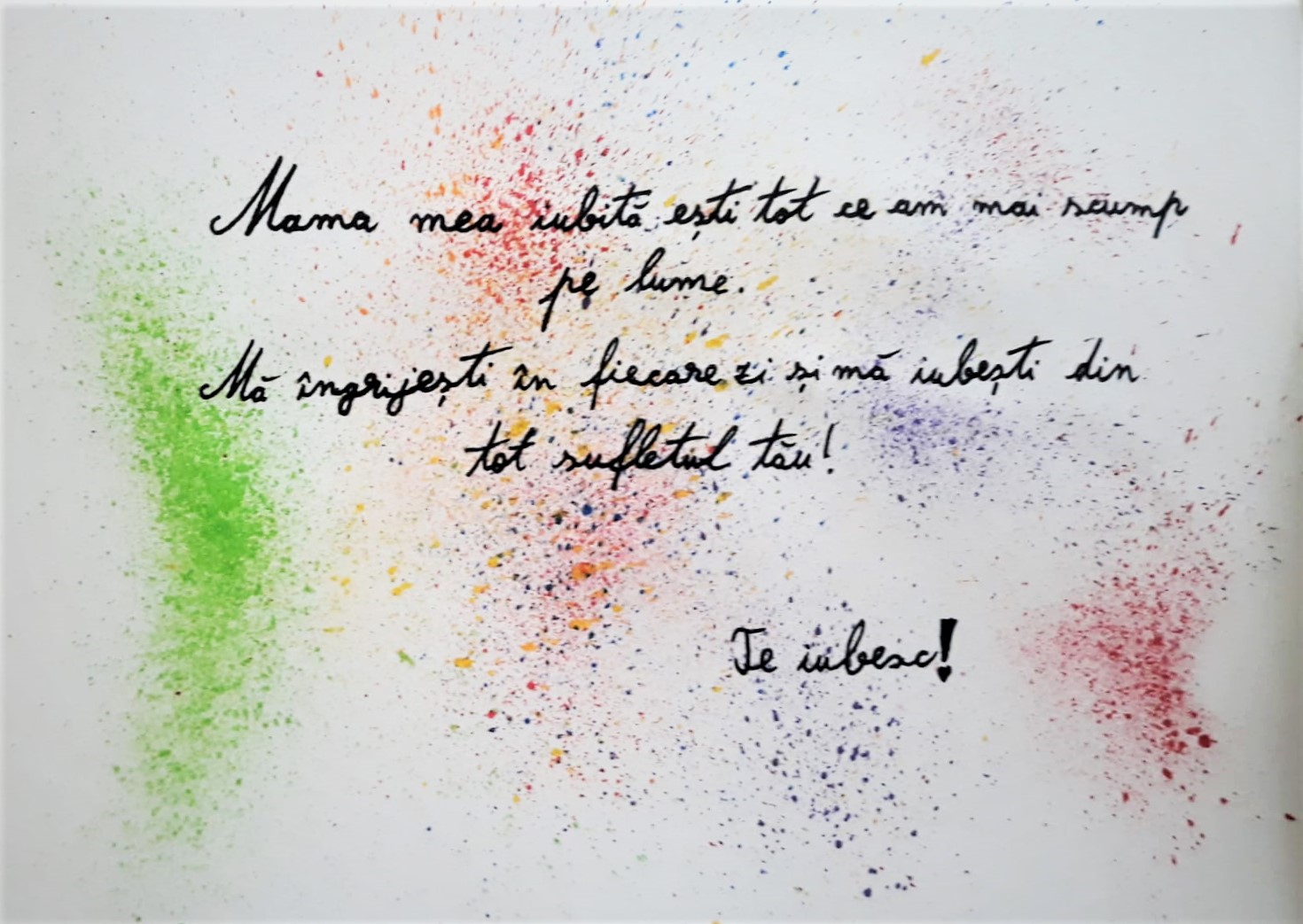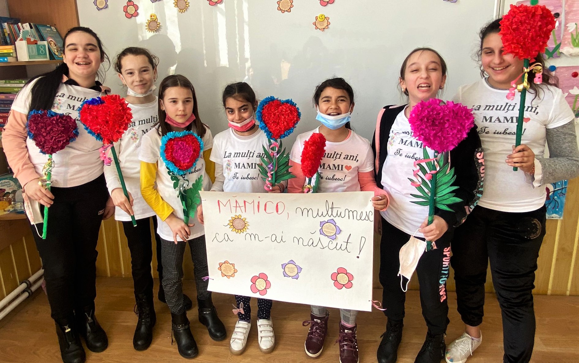 Totodată, cu ocazia zilei de 8 martie, toți copiii și tinerii au confecționat felicitări dedicate mamei cu mesajul „Mamă, îți mulțumesc că m-ai născut!”. Aceștia și-au exprimat sentimentele pe hârtie prin mici texte adresate mamei, dar și prin desene specifice. Pe tot parcursul activităților, toți copiii au purtat tricouri inscripționate cu mesajul „La mulți ani, mami!”.