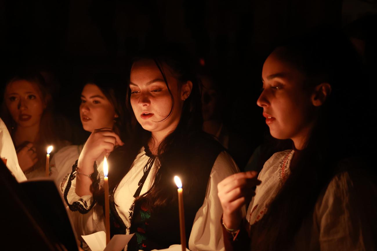 Răspunsurile la strană au fost oferite de voluntarii Asociației „Emanoil”, alături de familiile și prietenii lor. Seara și-a atins apogeul în cadrul unui emoționant concert de colinde, pregătit de voluntarii Corului „Emanoil”. Tânăra Andreea Moraru, coordonatoarea grupului muzical, a împărtășit celor prezenți un frumos gând despre Nașterea Domnului și despre tradiția colindului. De asemenea, părintele paroh Vasile Dănilă a vorbit despre importanța comuniunii care trebuie accentuată în astfel de clipe.