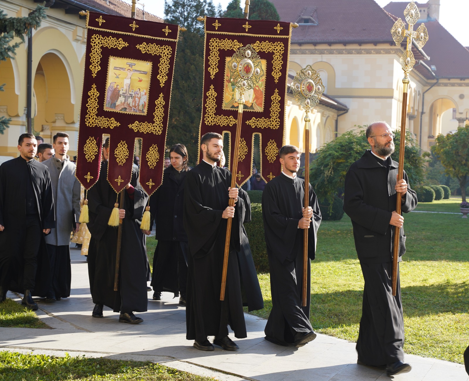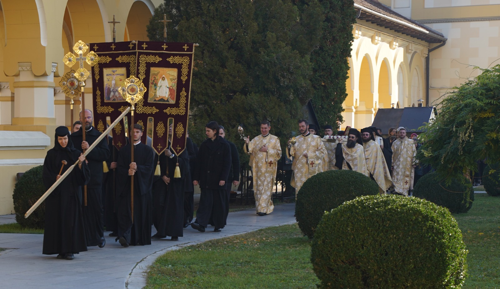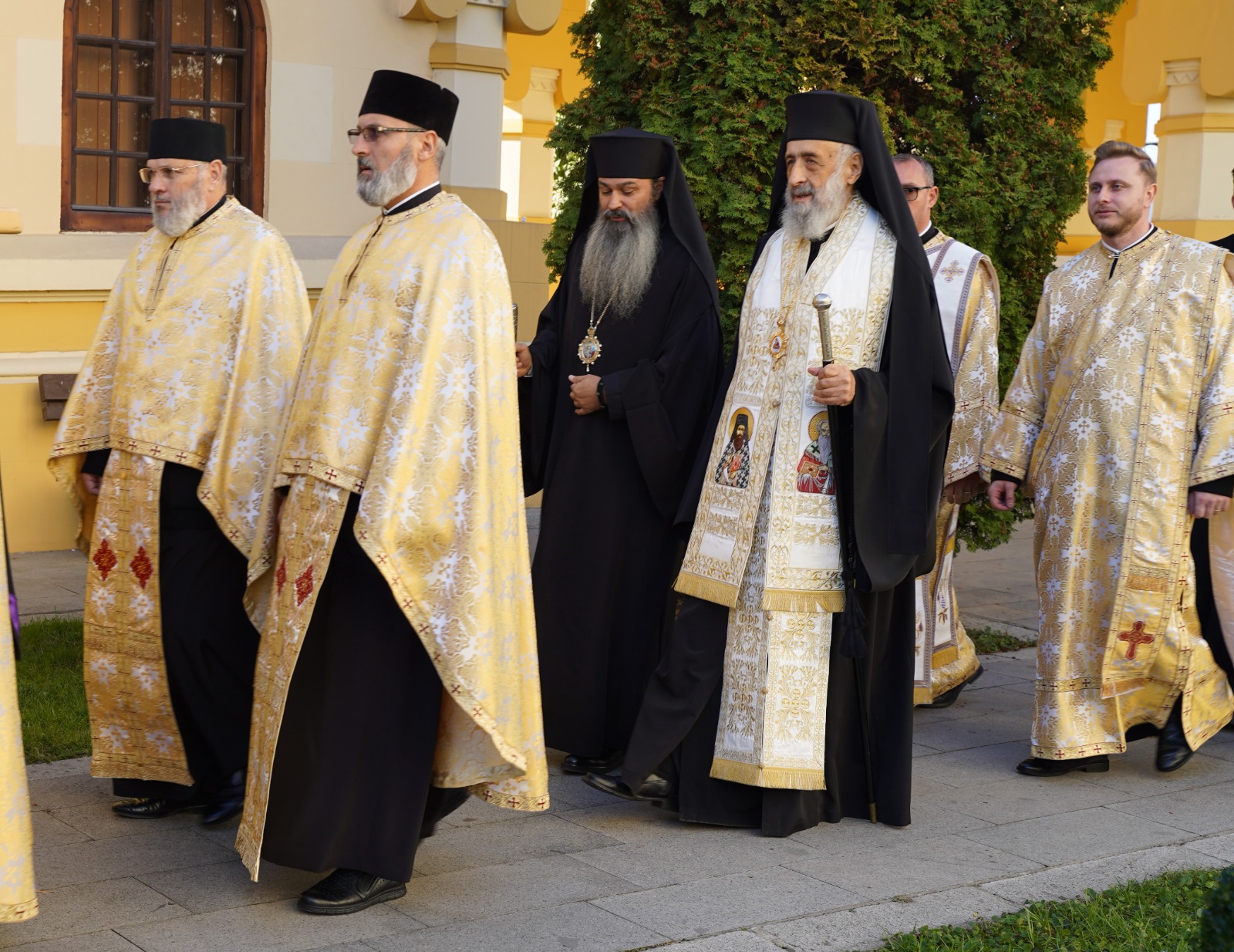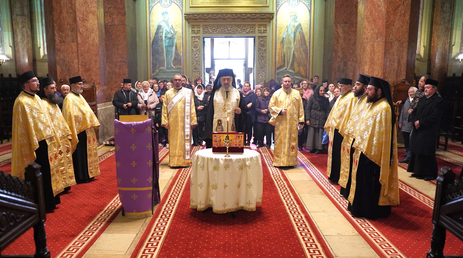Marți, 22 octombrie a.c., începând cu ora 10.00, Înaltpreasfințitul Părinte Irineu, Arhiepiscop al Alba Iuliei, a fost prezent la Catedrala Reîntregirii din Cetatea Marii Uniri. Arhipăstorul nostru, înconjurat de un numeros sobor de preoți și diaconi, a oficiat o slujbă de mulțumire și a rostit un cuvânt duhovnicesc, în prezența Preasfințitului Părinte Paisie Lugojanul, Episcop-vicar al Arhiepiscopiei Timișoarei, cu prilejul plecării delegației cu racla care adăpostește un fragment din cinstitele moaște ale Sfântului Ierarh Iosif cel Nou de la Partoș. După oficierea slujbei, Chiriarhul Alba Iuliei, dimpreună cu sfințiții slujitori și credincioșii prezenți, a luat parte la procesiunea cu sfintele moaște în jurul Catedralei Încoronării.
